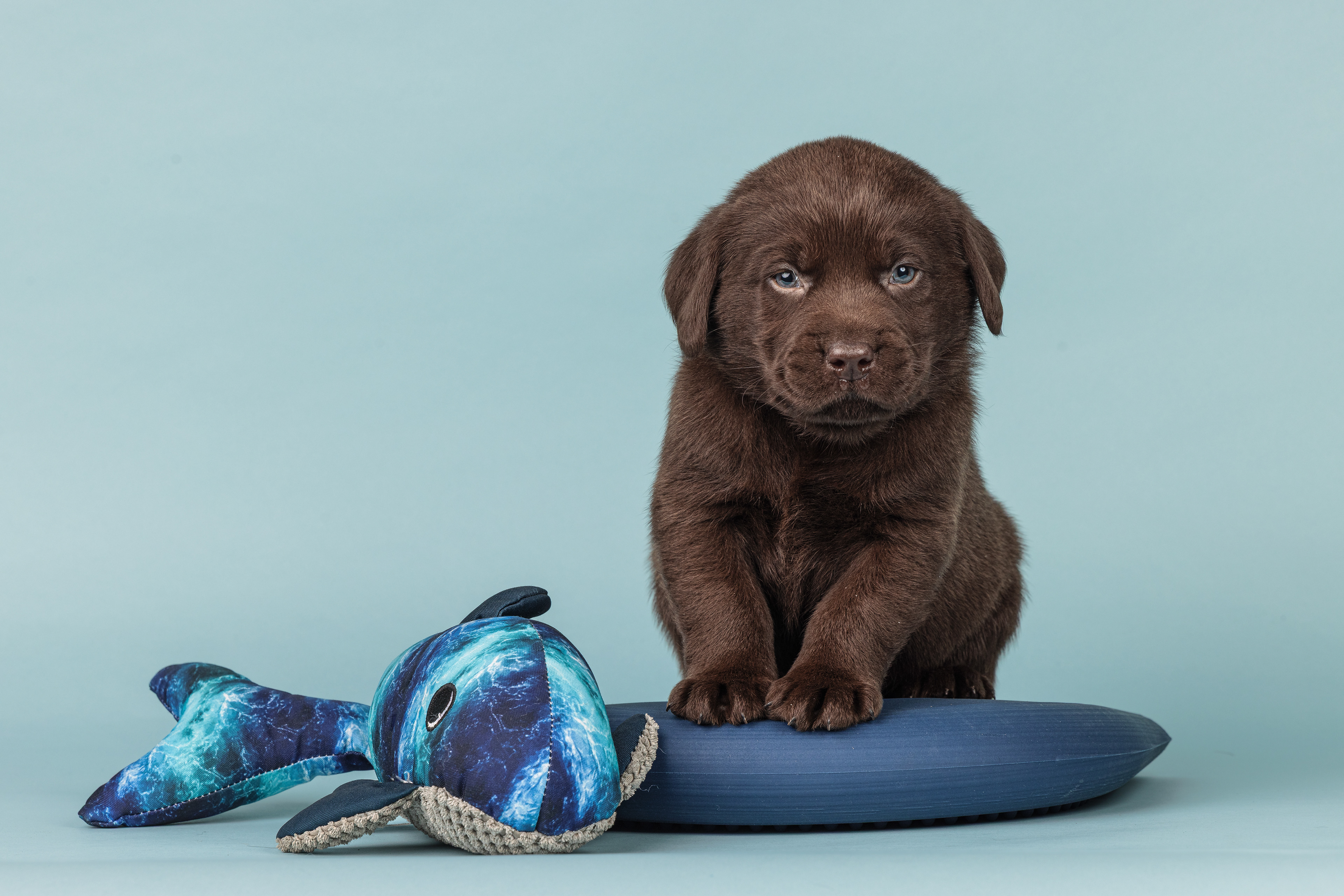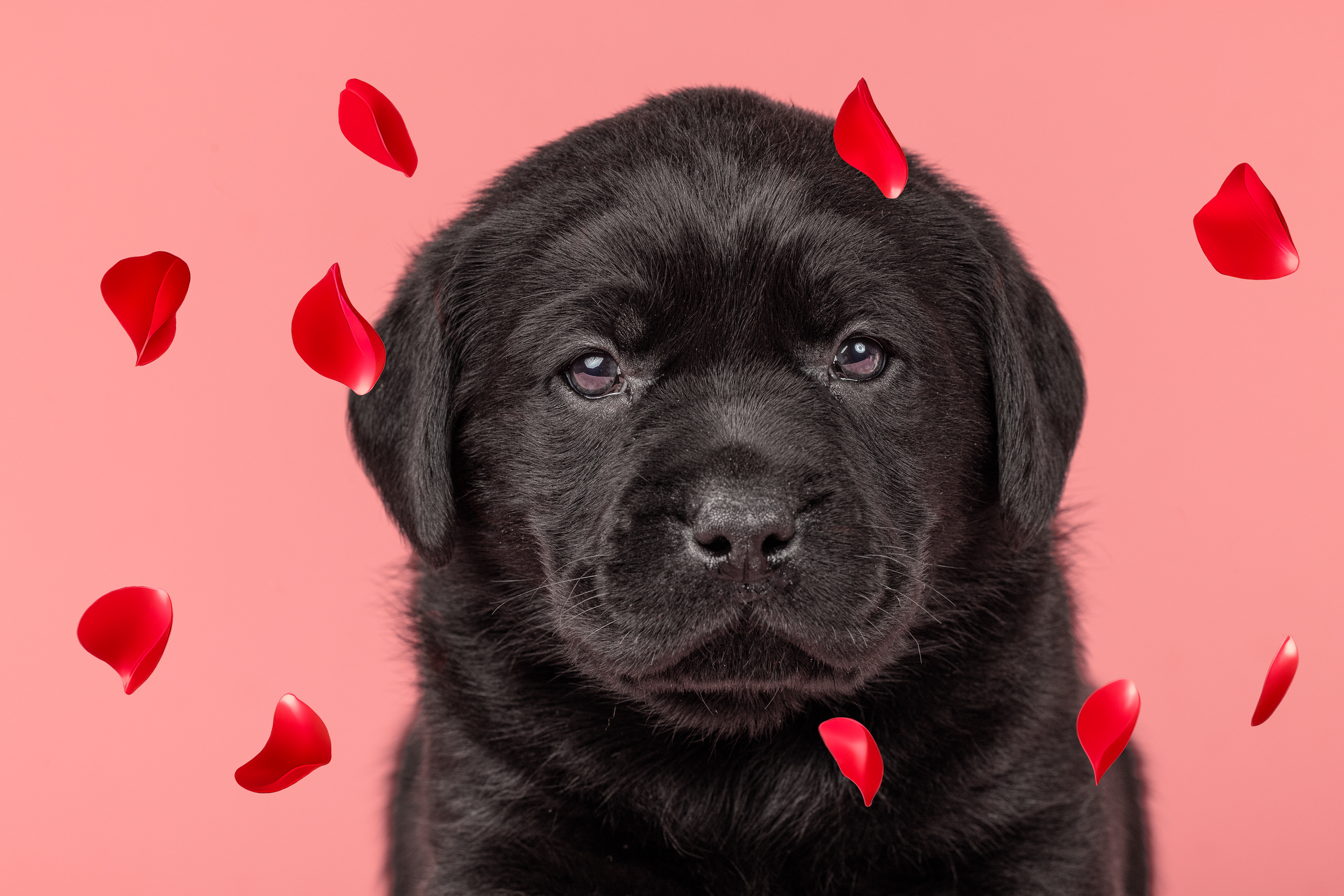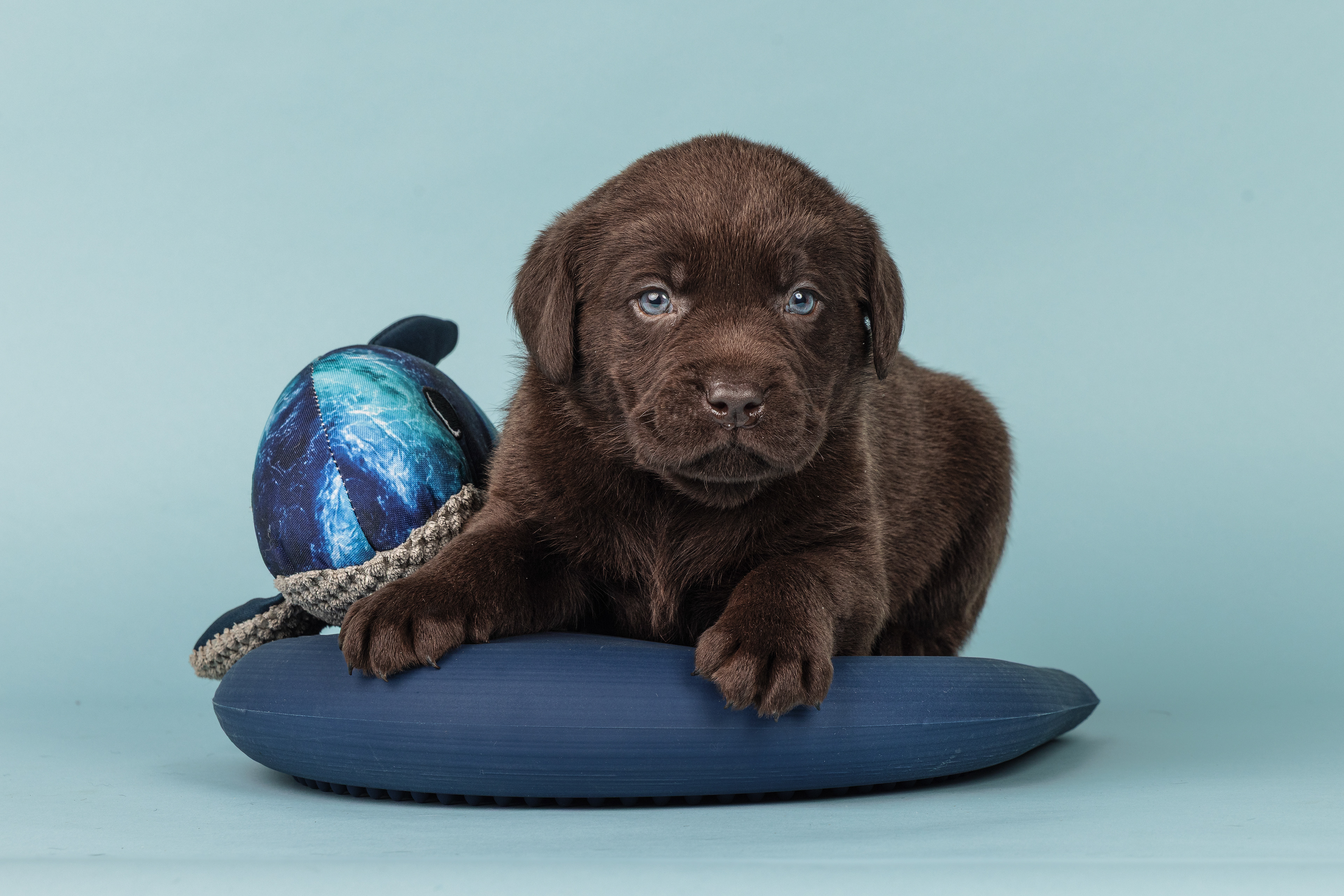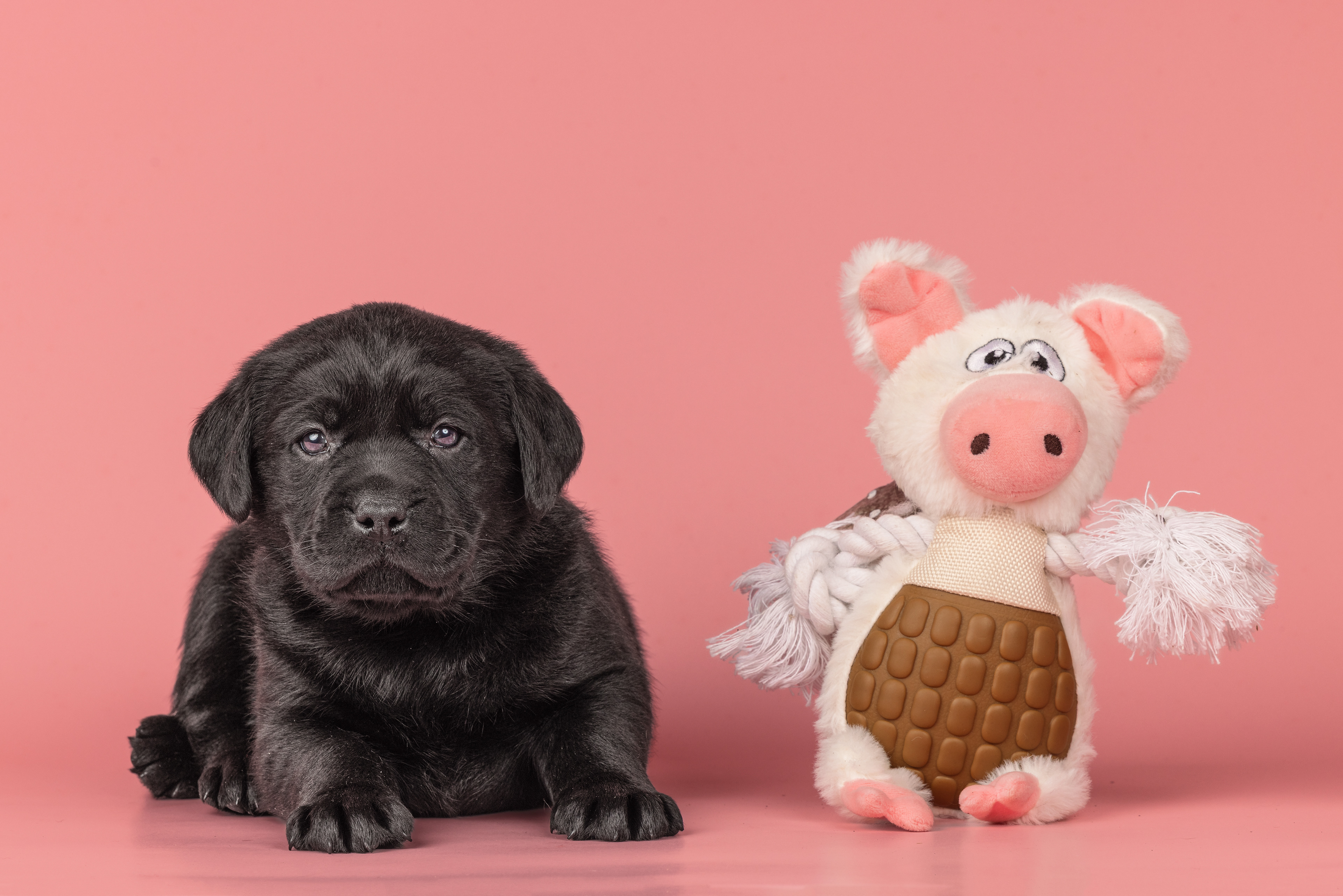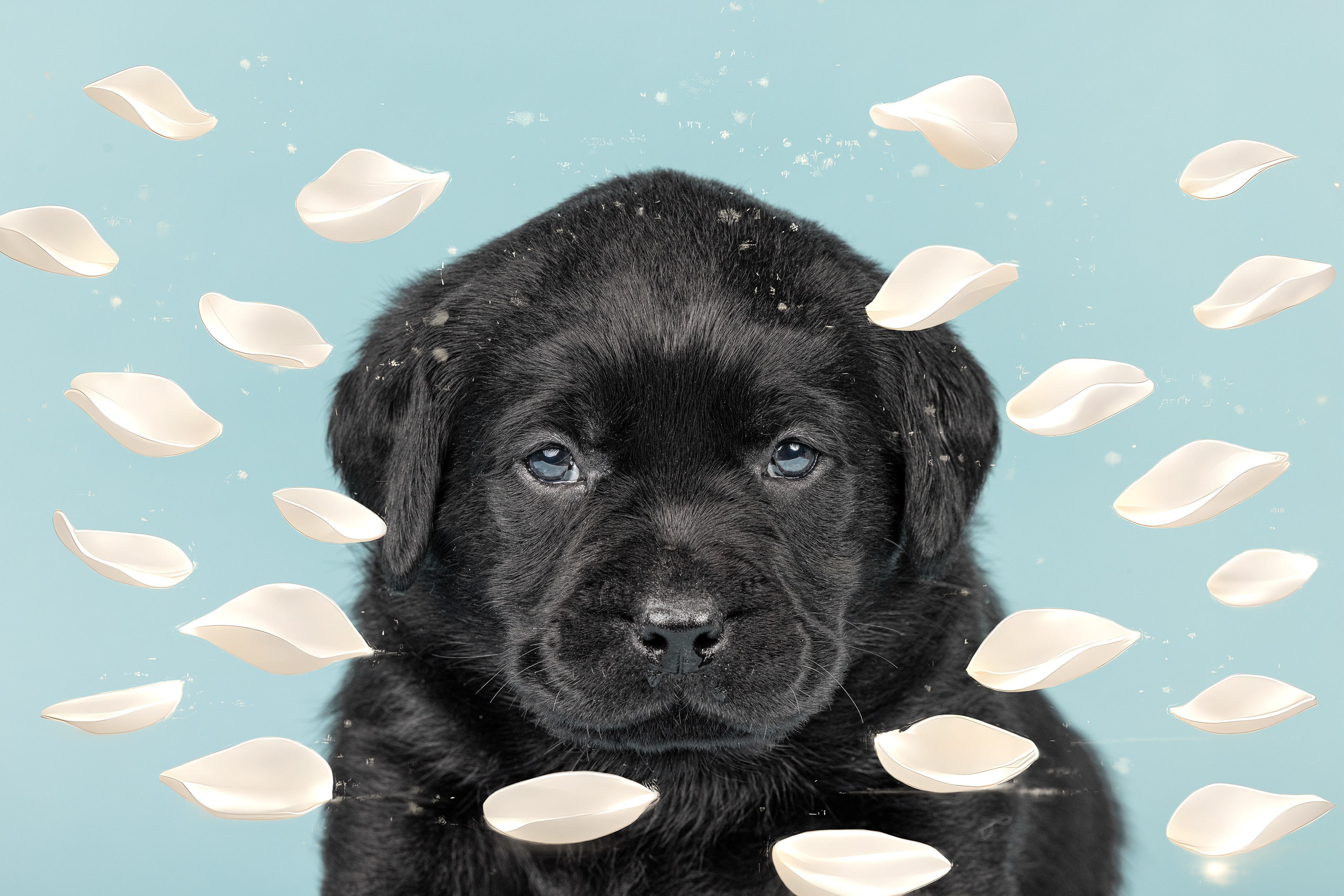 Vandaag de laatste dag van ons logeetje. Ik had bedacht om foto's van alle pups afzonderlijk te maken op een zwarte achtergrond en te werken met een perspex plaat voor reflectie. Omdat ik geen bellenblaas kon vinden, heb ik de bellen in Photoshop toegevoegd. Natuurlijk moest er ook een foto van haar hulphond gemaakt worden en dat was voor mij even een mooie gelegenheid om de instellingen goed te krijgen.