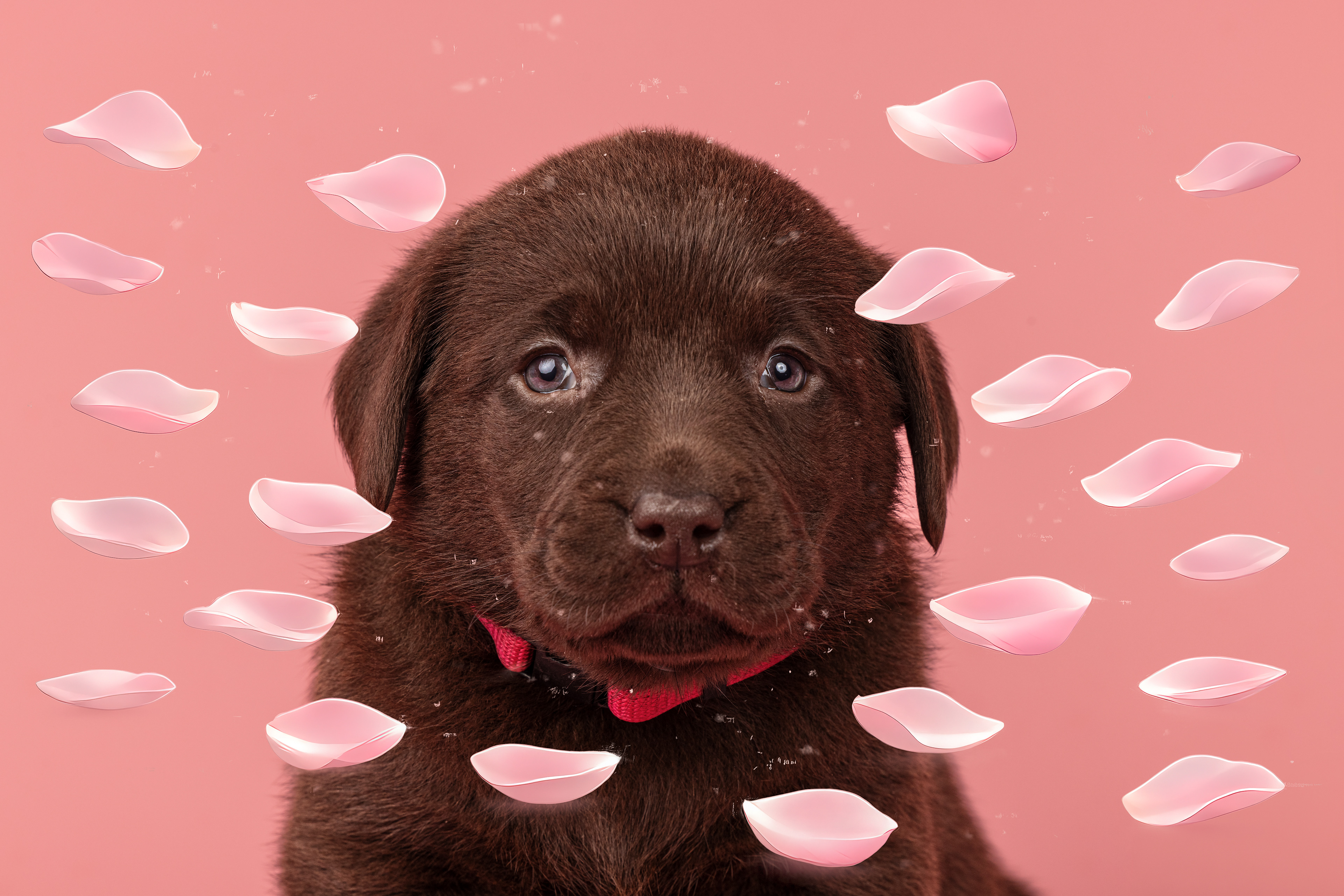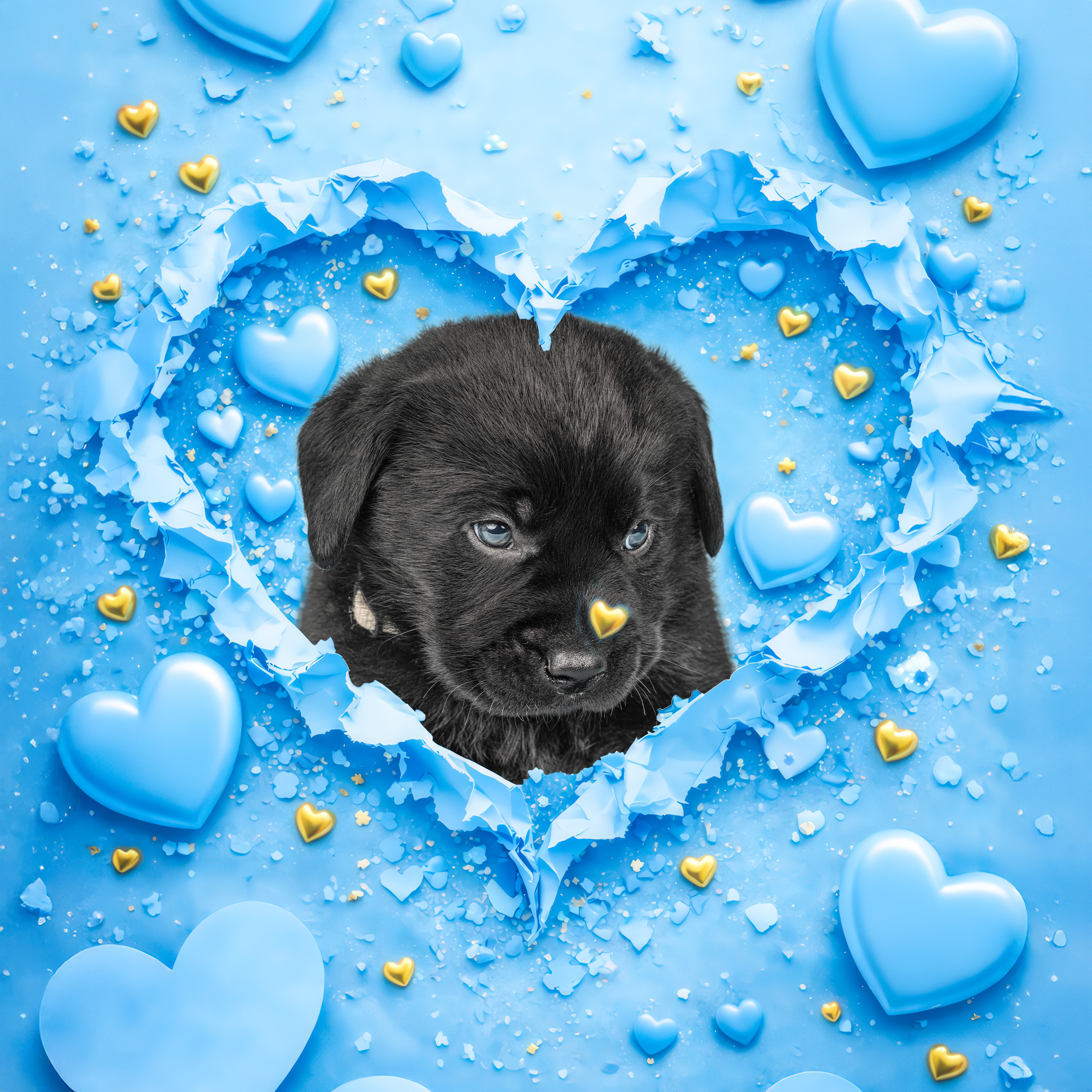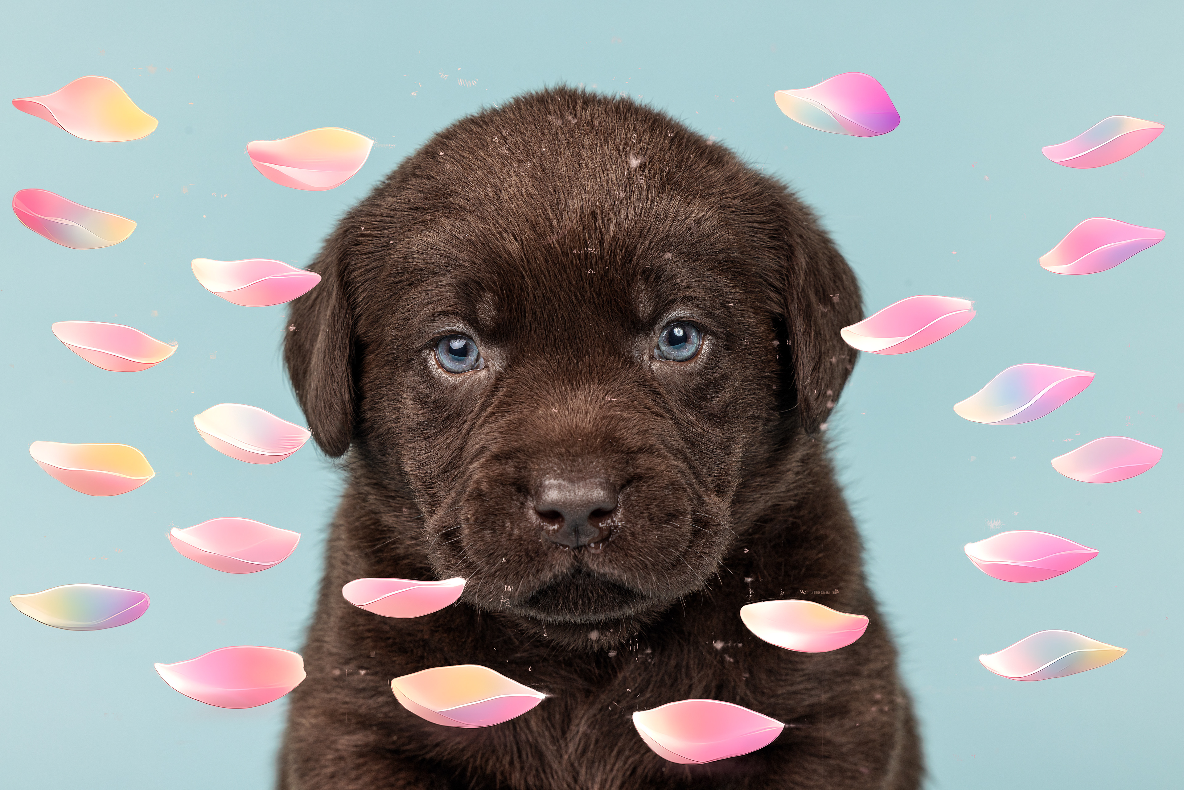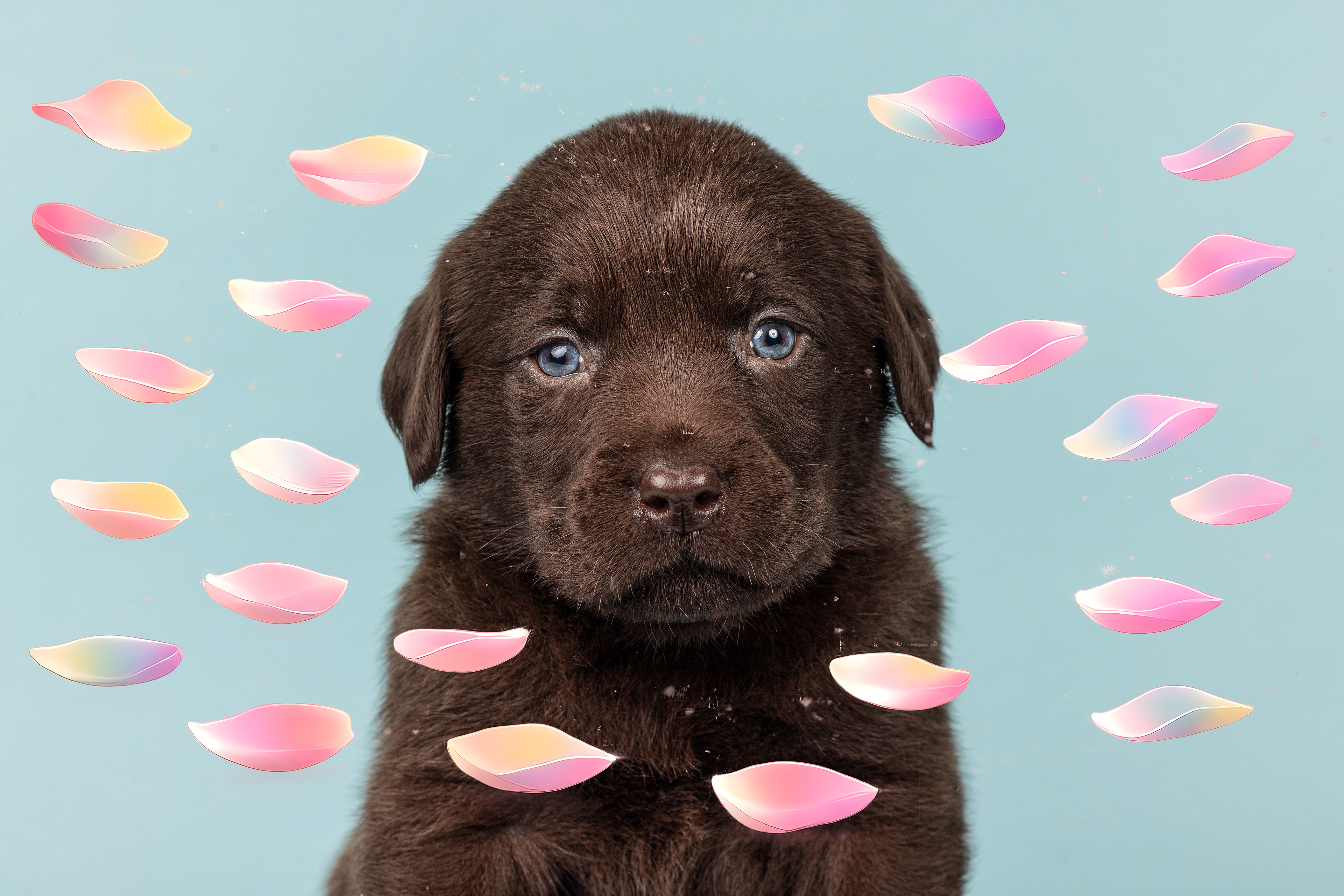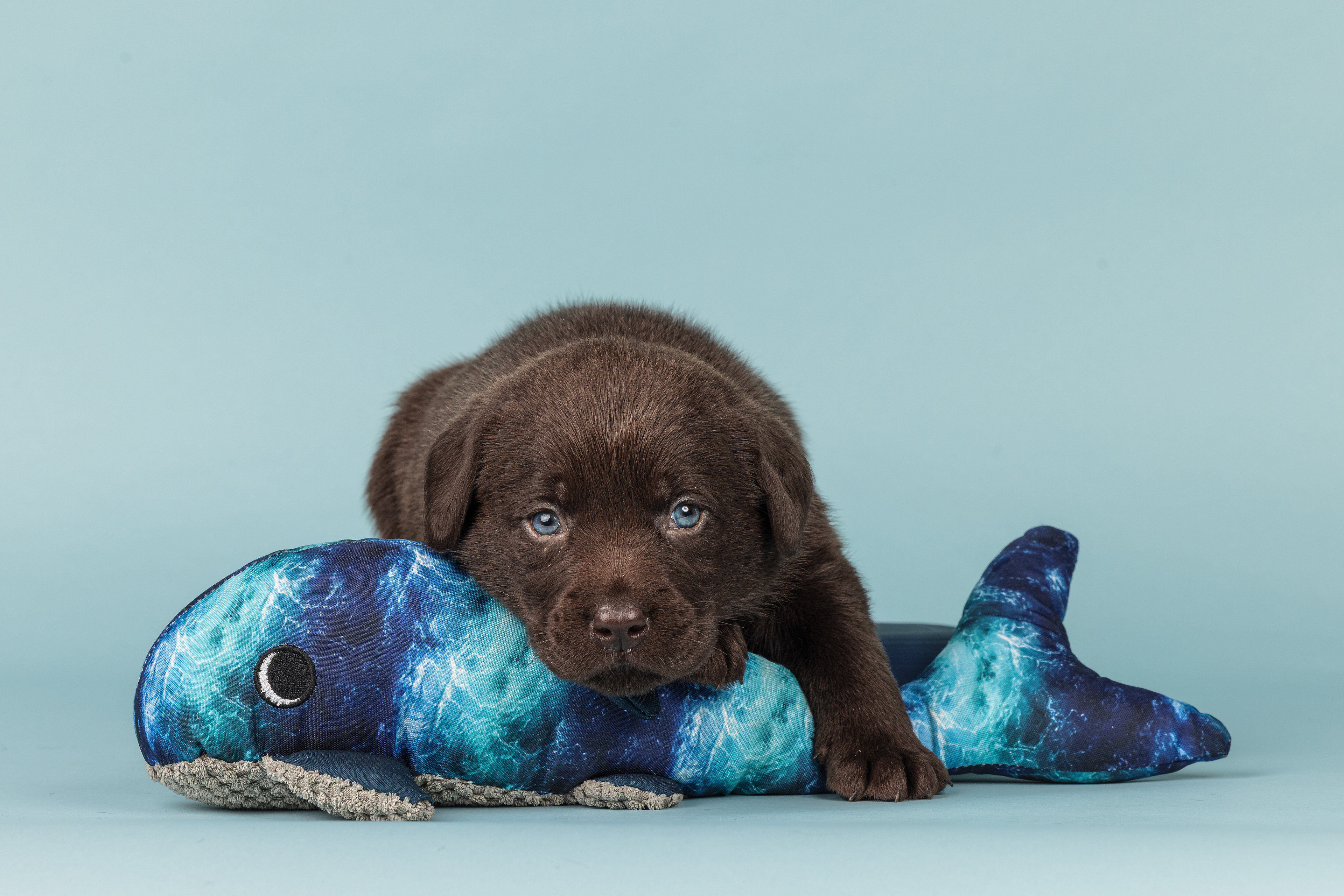 Vandaag de laatste dag van ons logeetje. Ik had bedacht om foto's van alle pups afzonderlijk te maken op een zwarte achtergrond en te werken met een perspex plaat voor reflectie. Omdat ik geen bellenblaas kon vinden, heb ik de bellen in Photoshop toegevoegd. Natuurlijk moest er ook een foto van haar hulphond gemaakt worden en dat was voor mij even een mooie gelegenheid om de instellingen goed te krijgen.