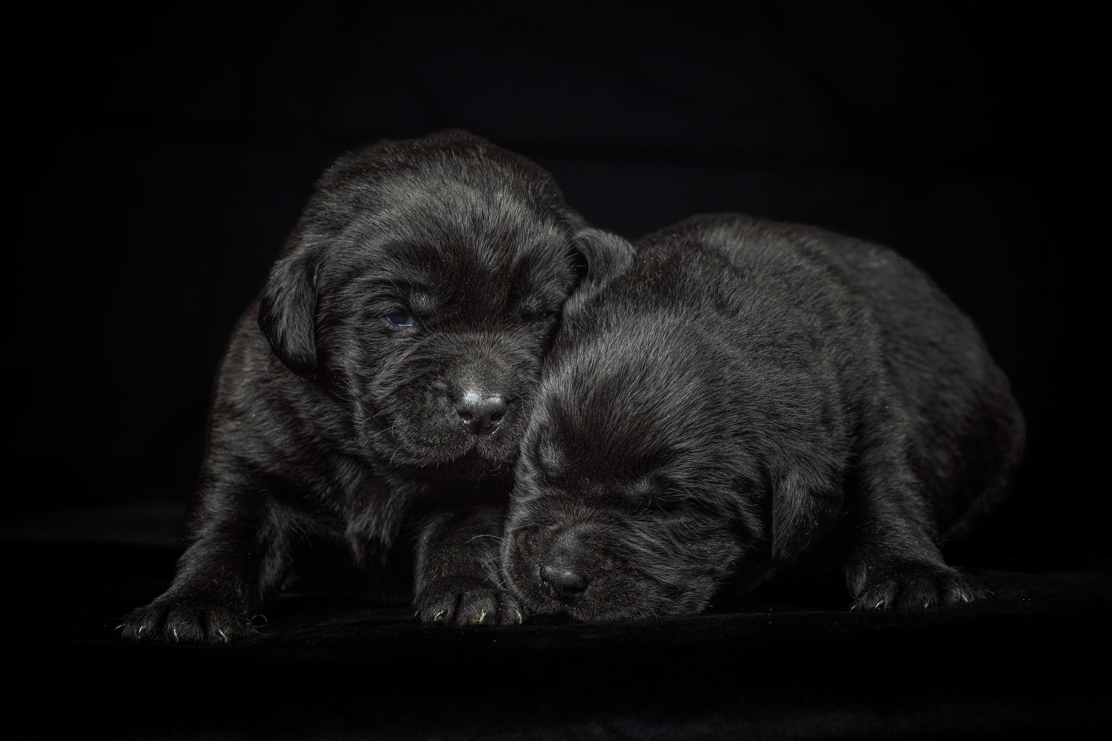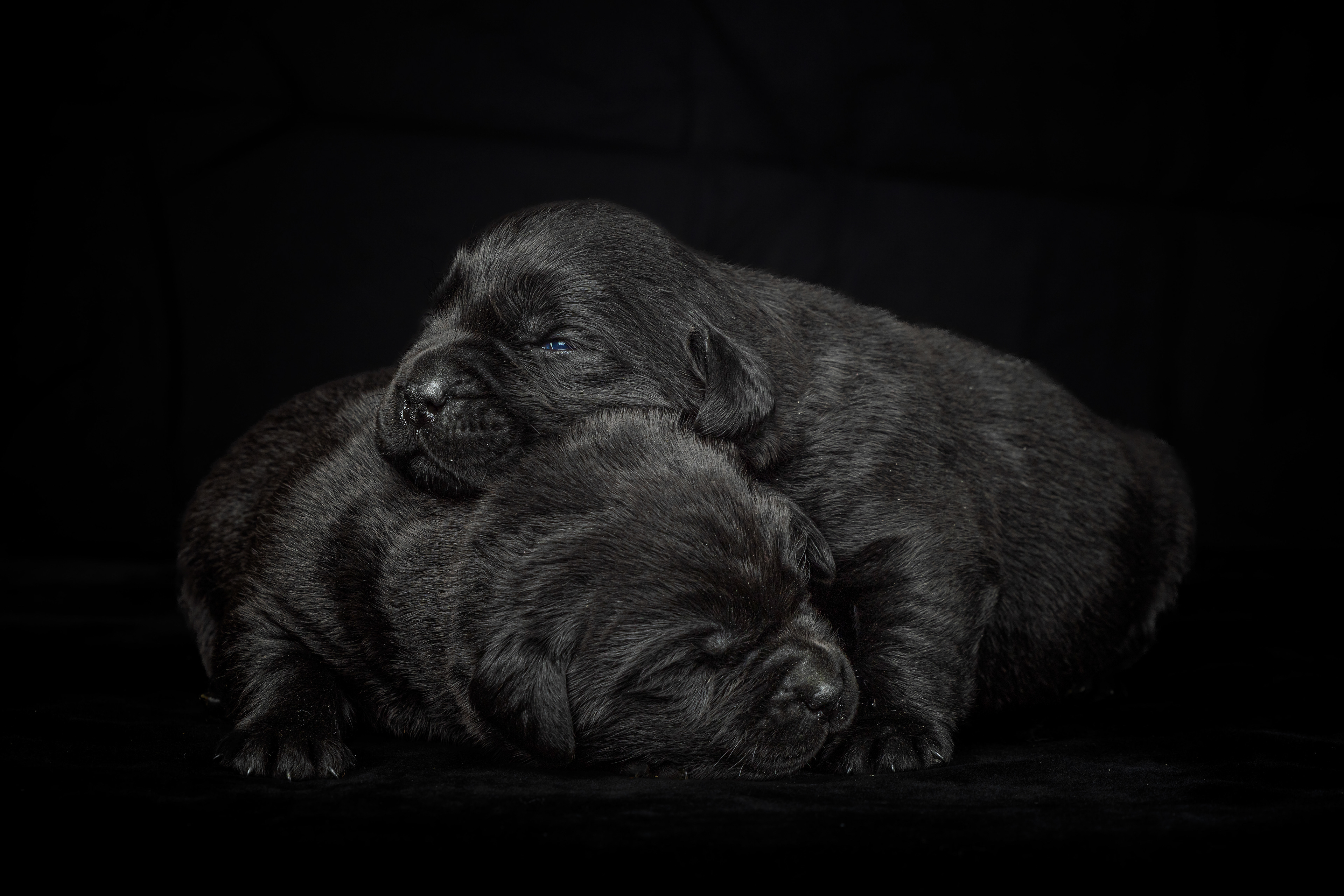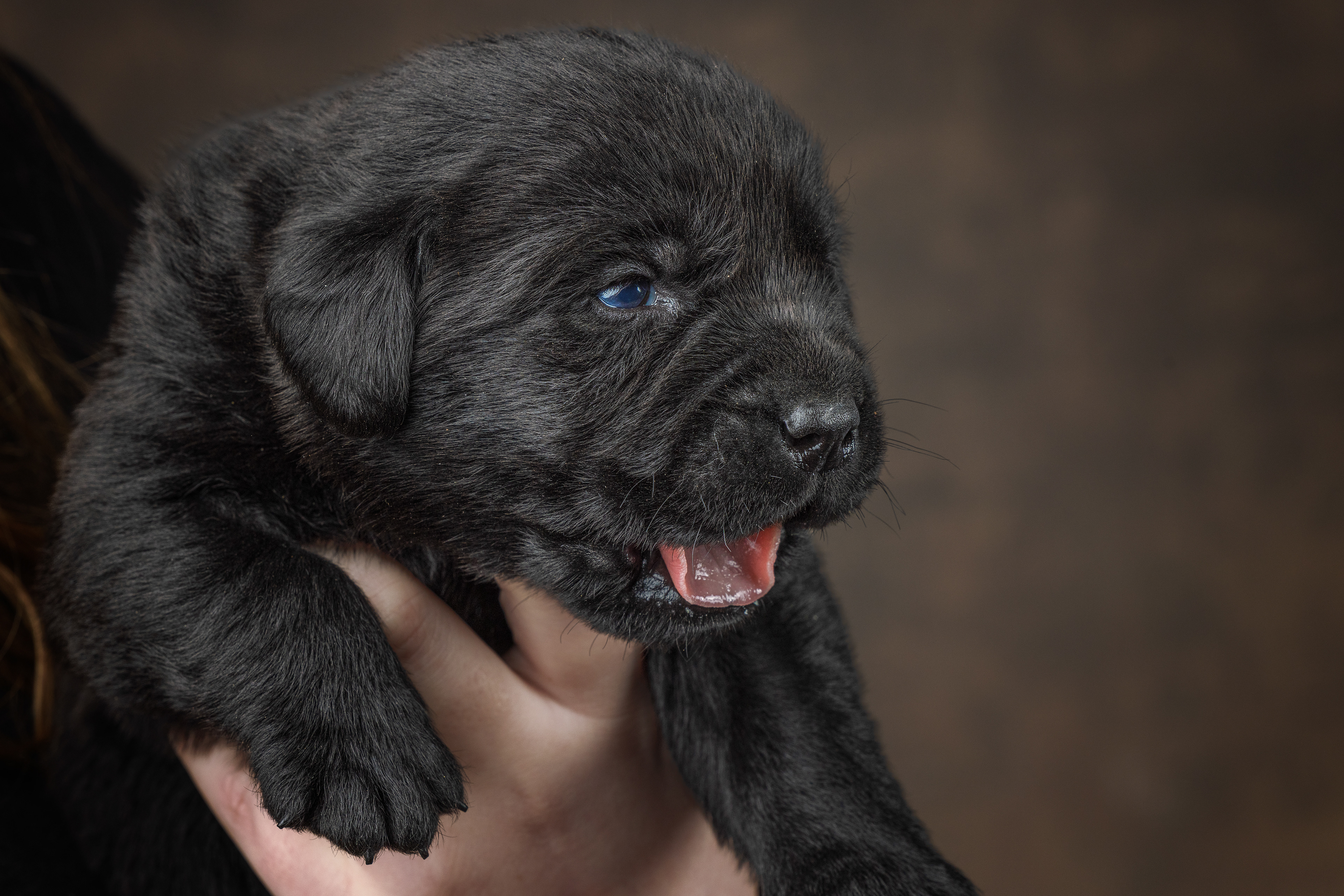 De oogjes beginnen open te gaan en dat is bijna altijd zo het eerst bij de kleintjes, dat is bij de teefjes bij het zwarte meisje 🖤 Zij doet af en toe heel voorzichtig haar rechter oogje open.