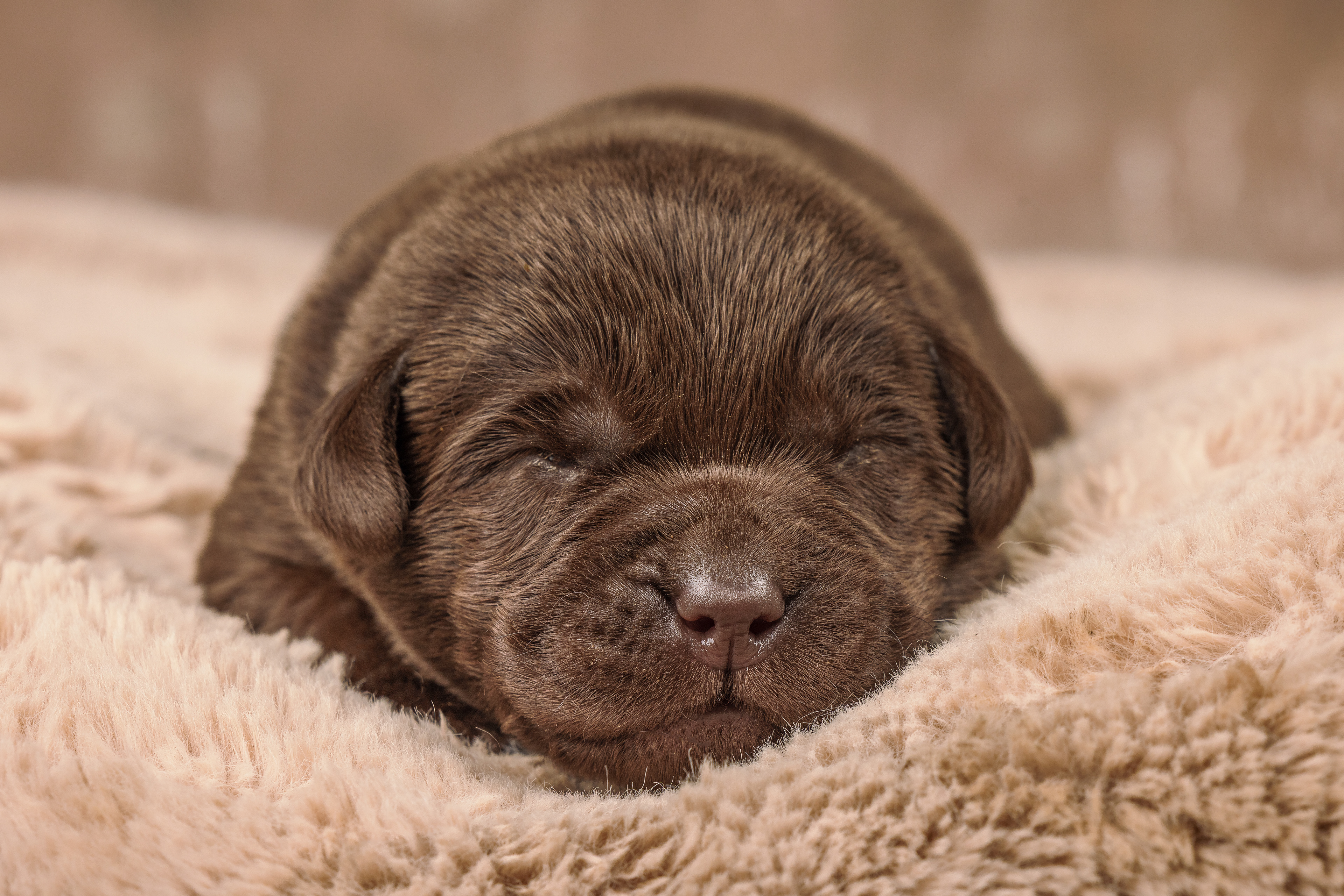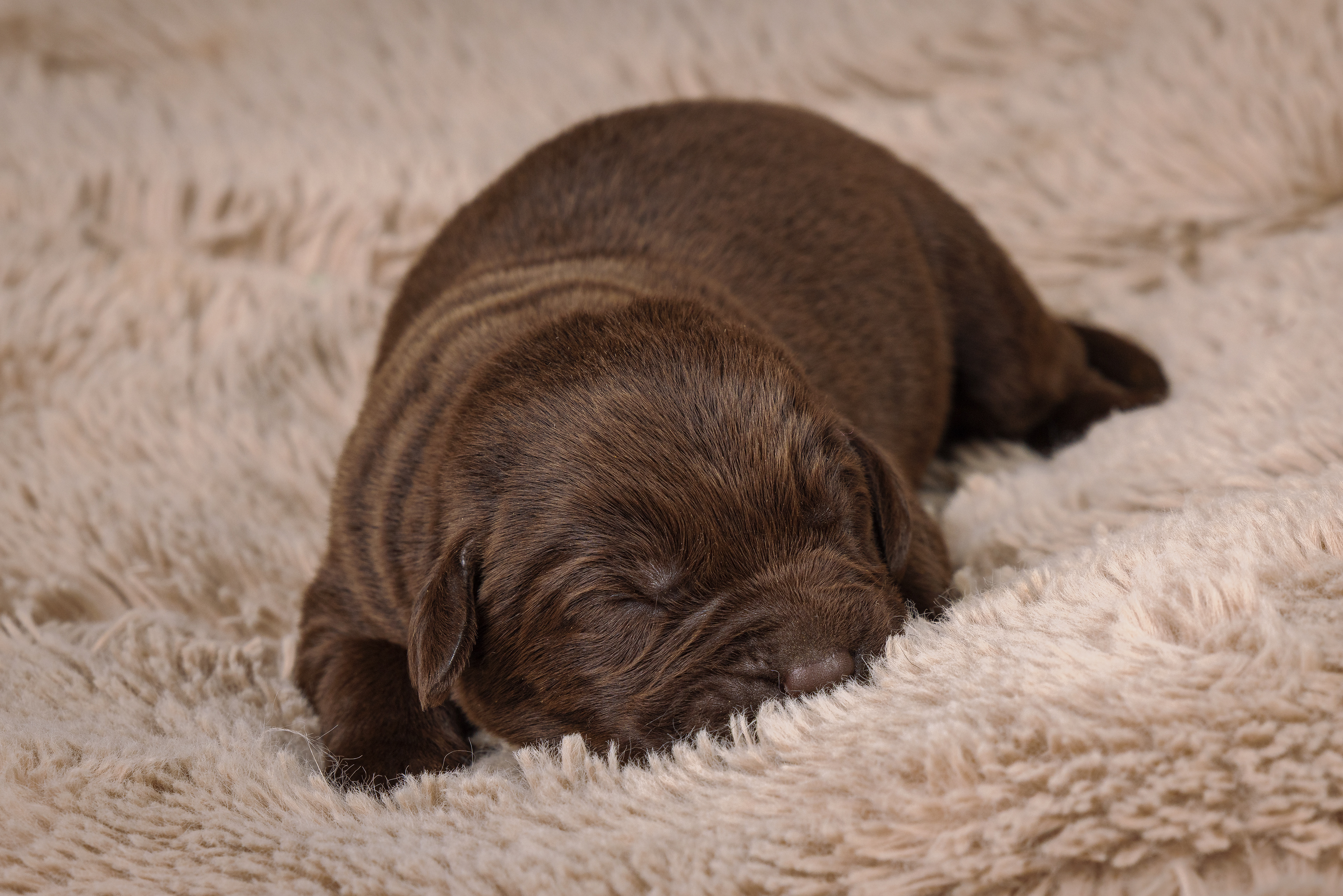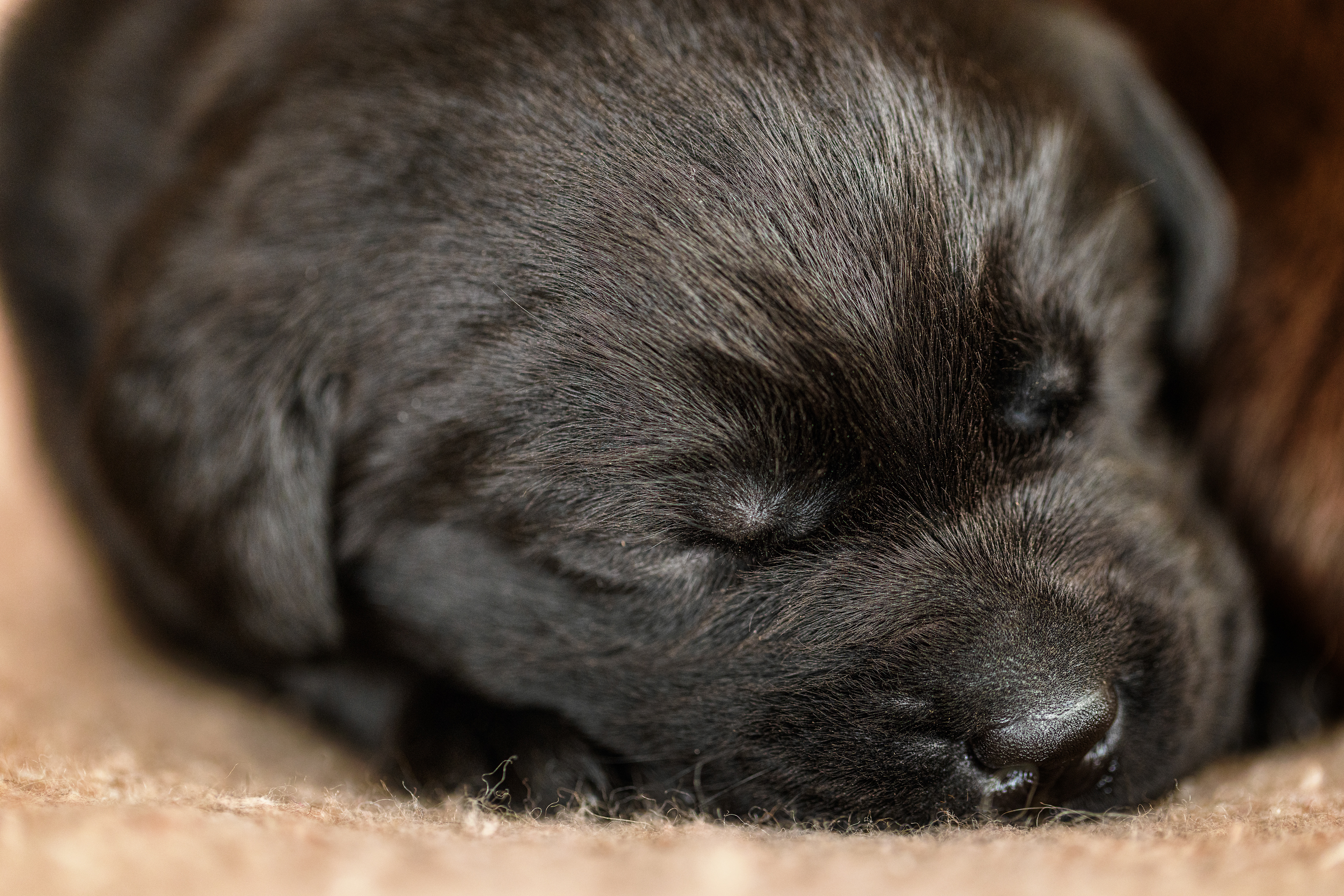 Sinds enkele dagen halen we elke keer een paar pupjes bij Kimmy weg om te knuffelen en te socialiseren. Die twee werden dus onderwerp van het uitproberen van die lens. Omdat ik er een tussenstuk bij moest gebruiken verloor ik wel een beetje licht en ik had geen zin om een flits te gebruiken. Maar toch wel een paar leuke foto's gemaakt en een aardig gedetailleerd neusje van een bruin reutje. De zwarte pup was toevallig het teefje.