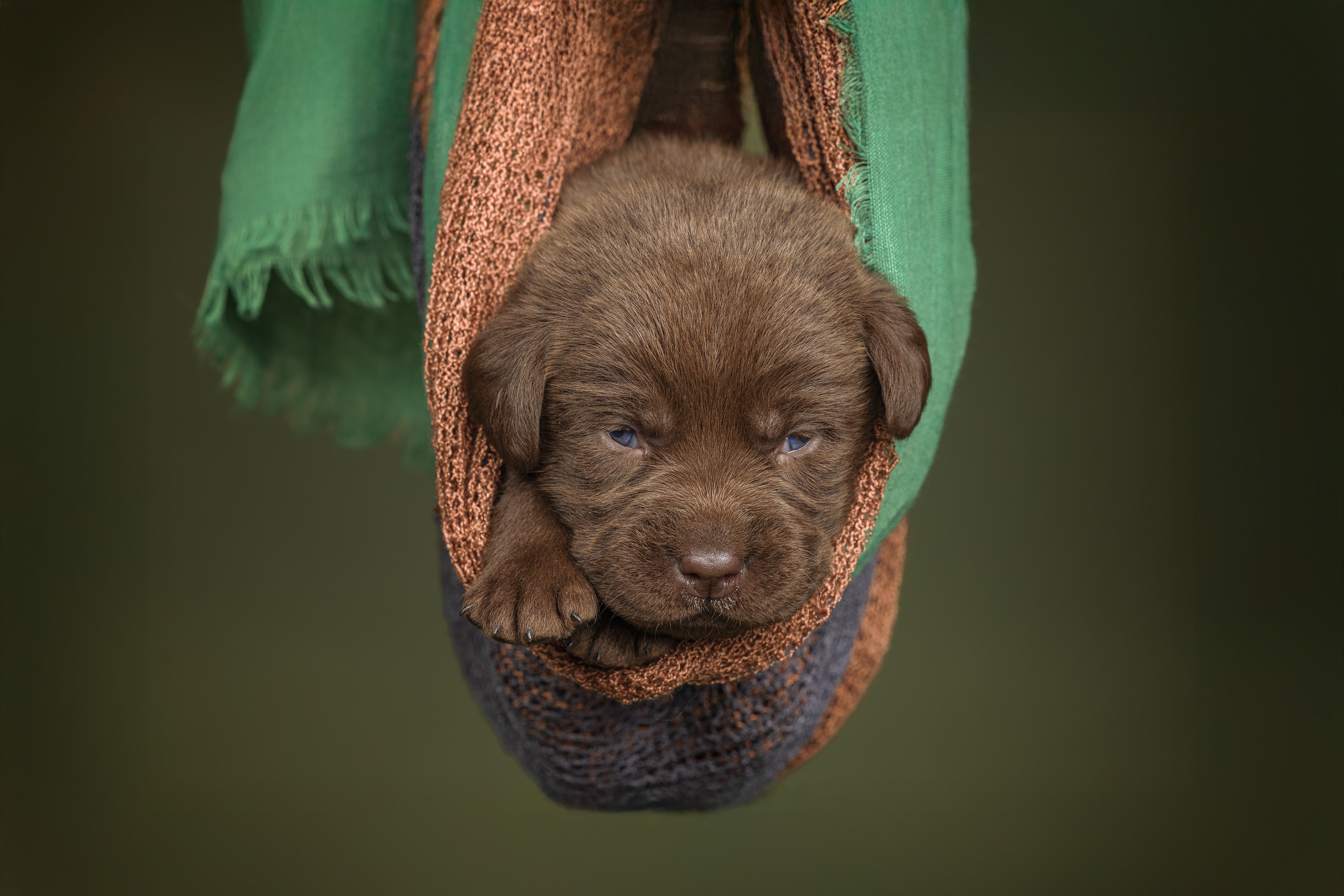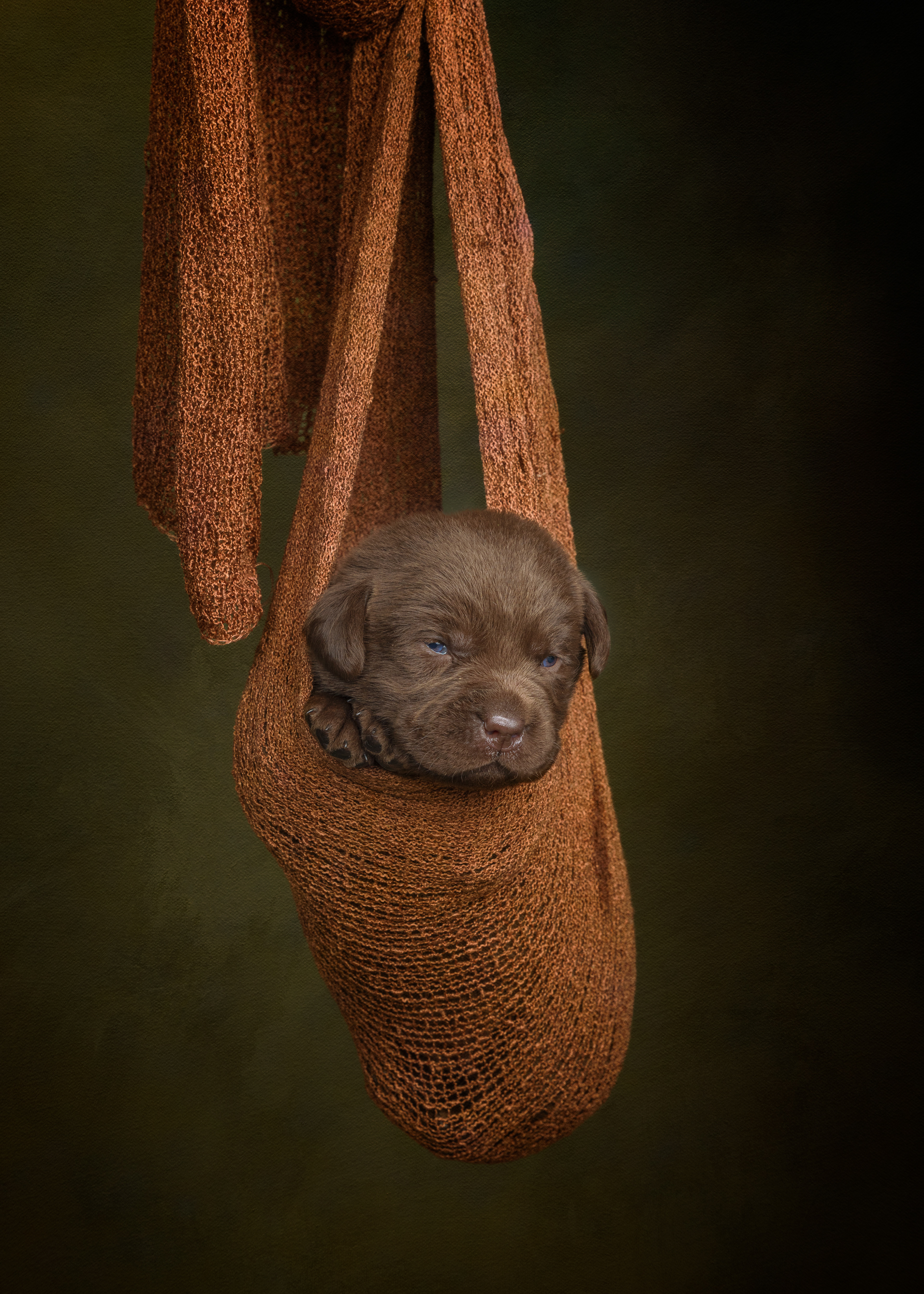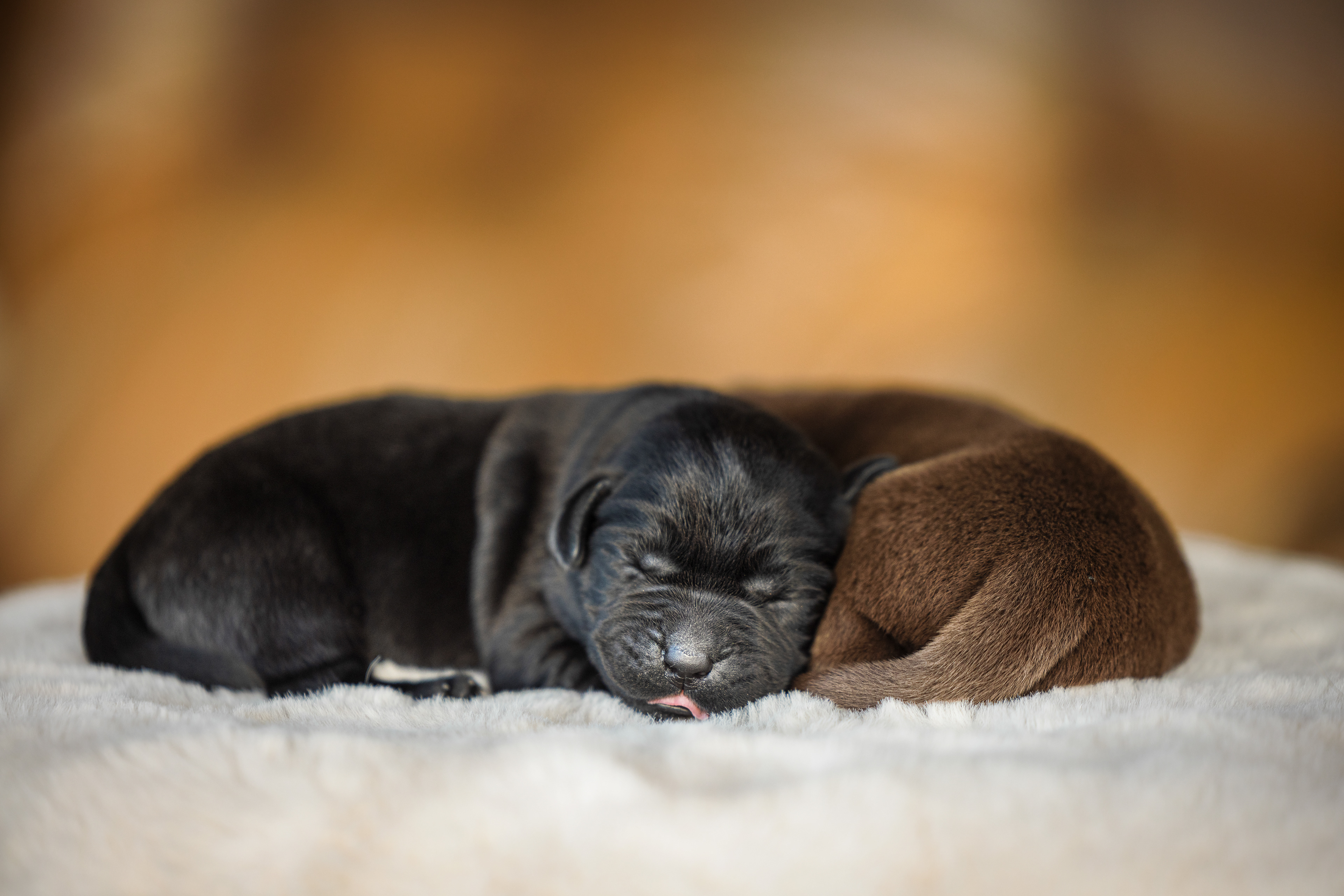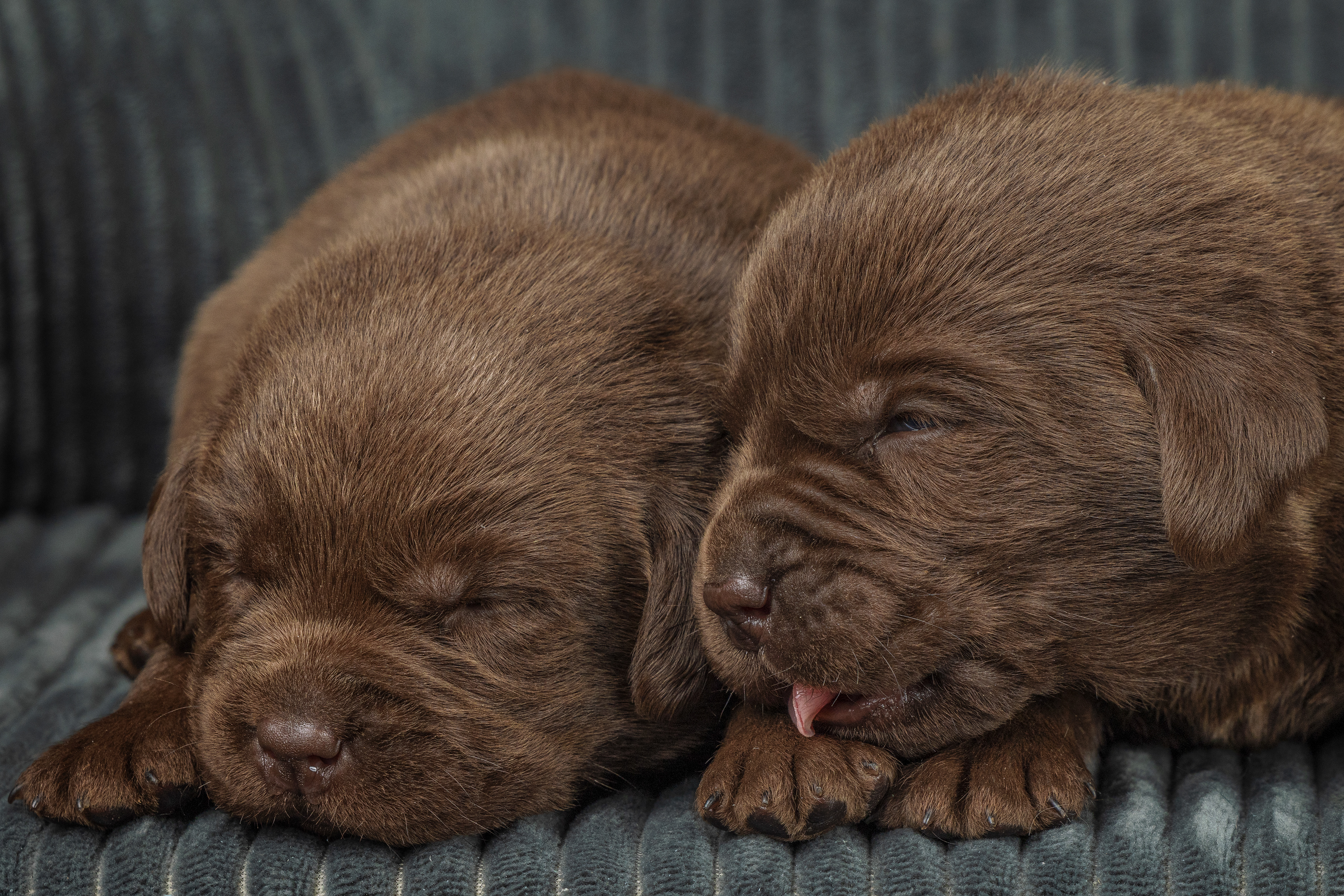 Sinds enkele dagen halen we elke keer een paar pupjes bij Kimmy weg om te knuffelen en te socialiseren. Die twee werden dus onderwerp van het uitproberen van die lens. Omdat ik er een tussenstuk bij moest gebruiken verloor ik wel een beetje licht en ik had geen zin om een flits te gebruiken. Maar toch wel een paar leuke foto's gemaakt en een aardig gedetailleerd neusje van een bruin reutje. De zwarte pup was toevallig het teefje.
