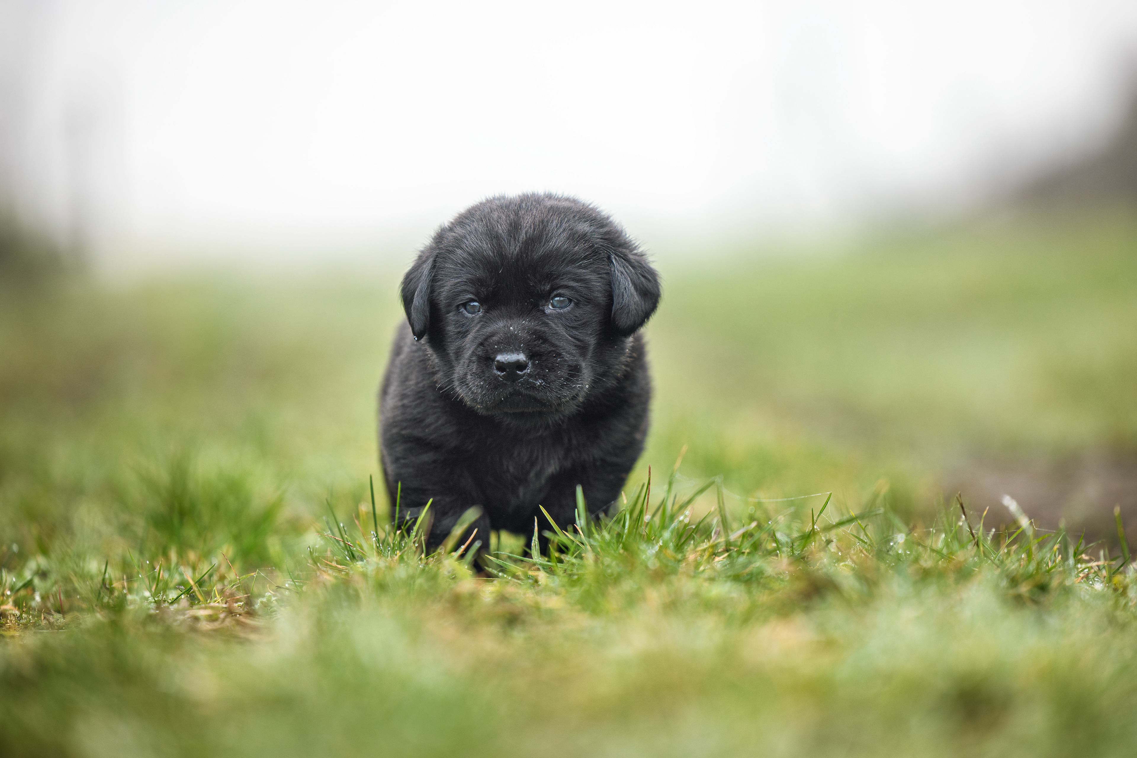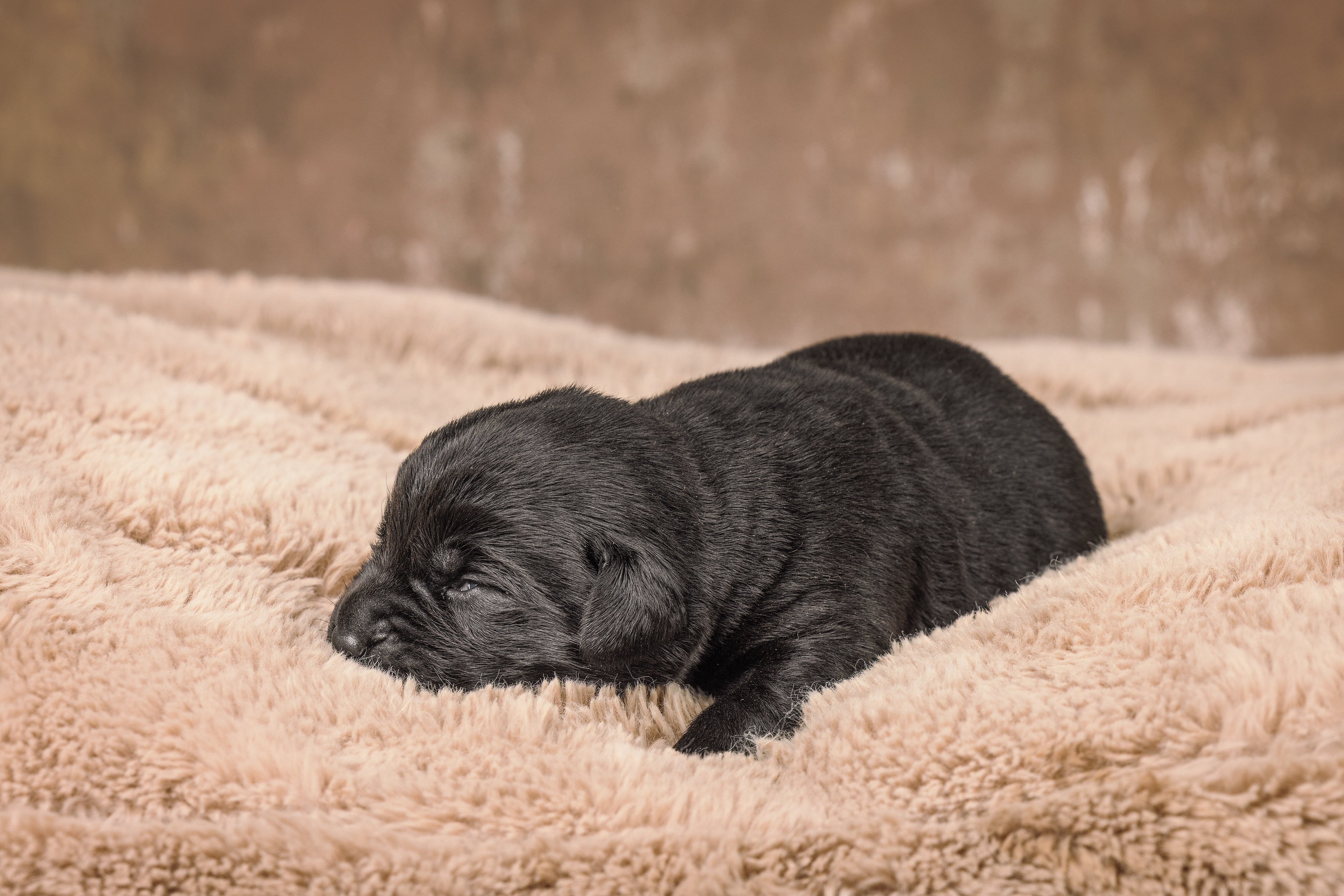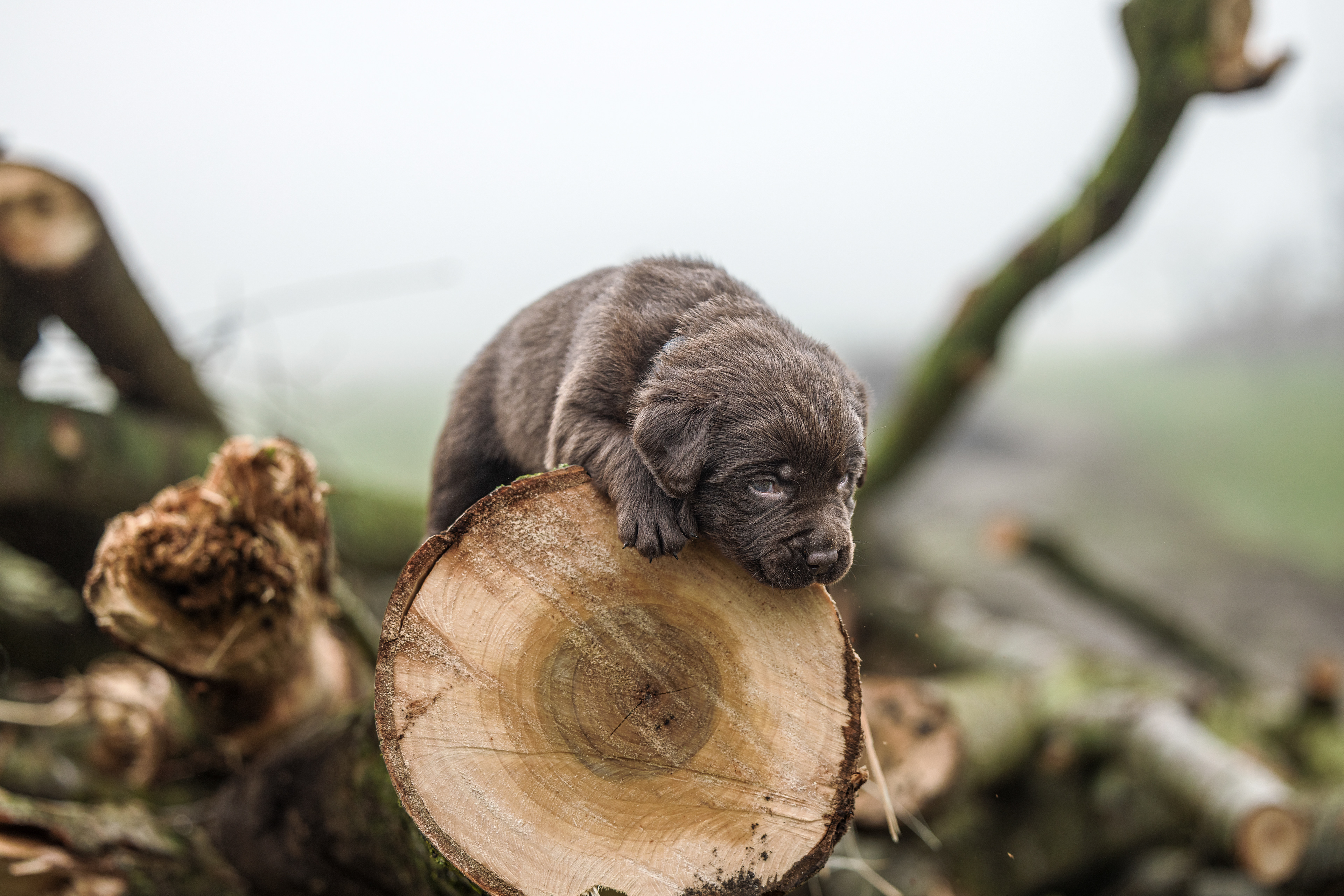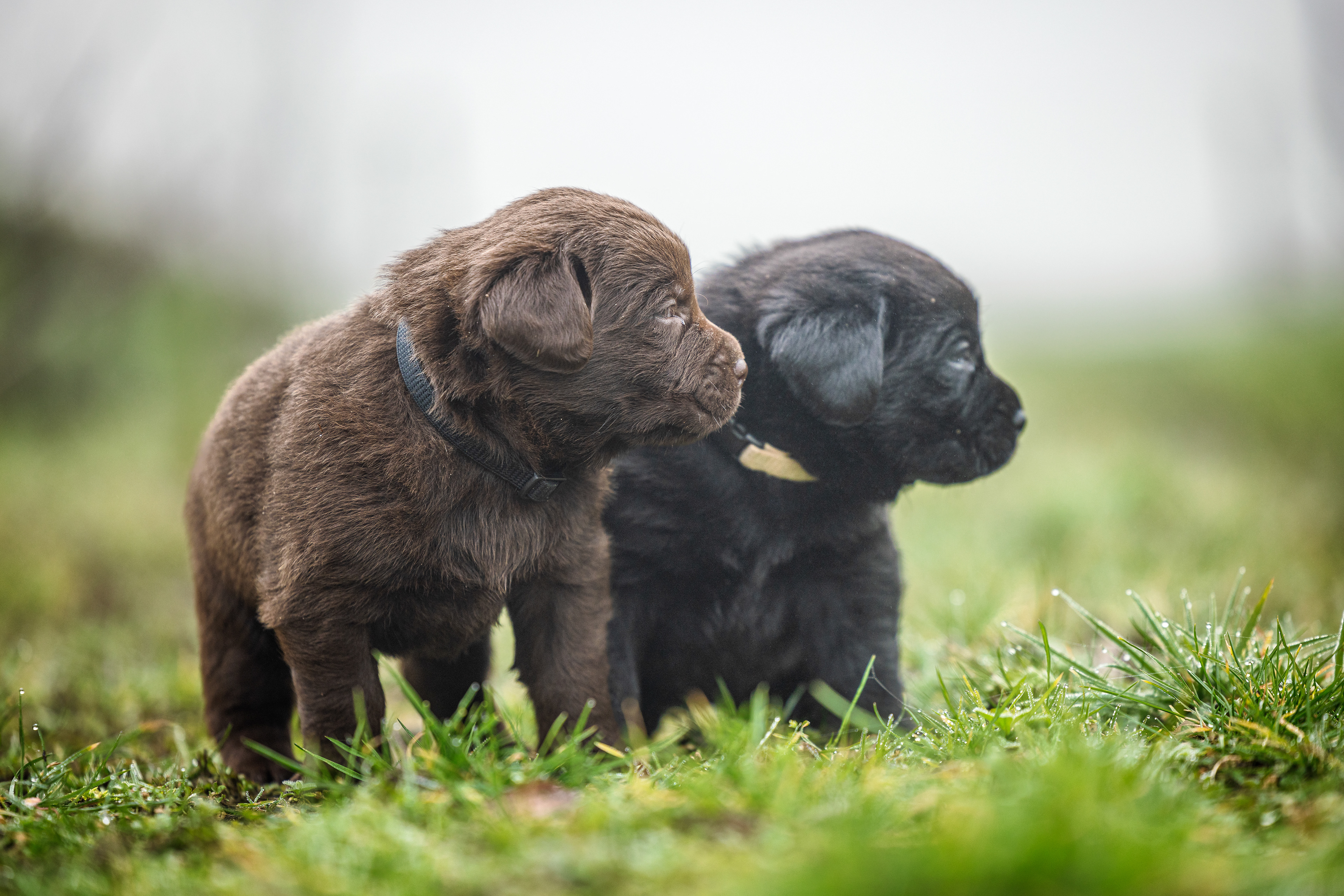 Het is vandaag een hele mistige dag en heb ik alleen maar tijd om 2 pups te kunnen fotograferen. Een bruin reutje en een zwart reutje. Wat zijn ze nog klein als ze buiten komen!