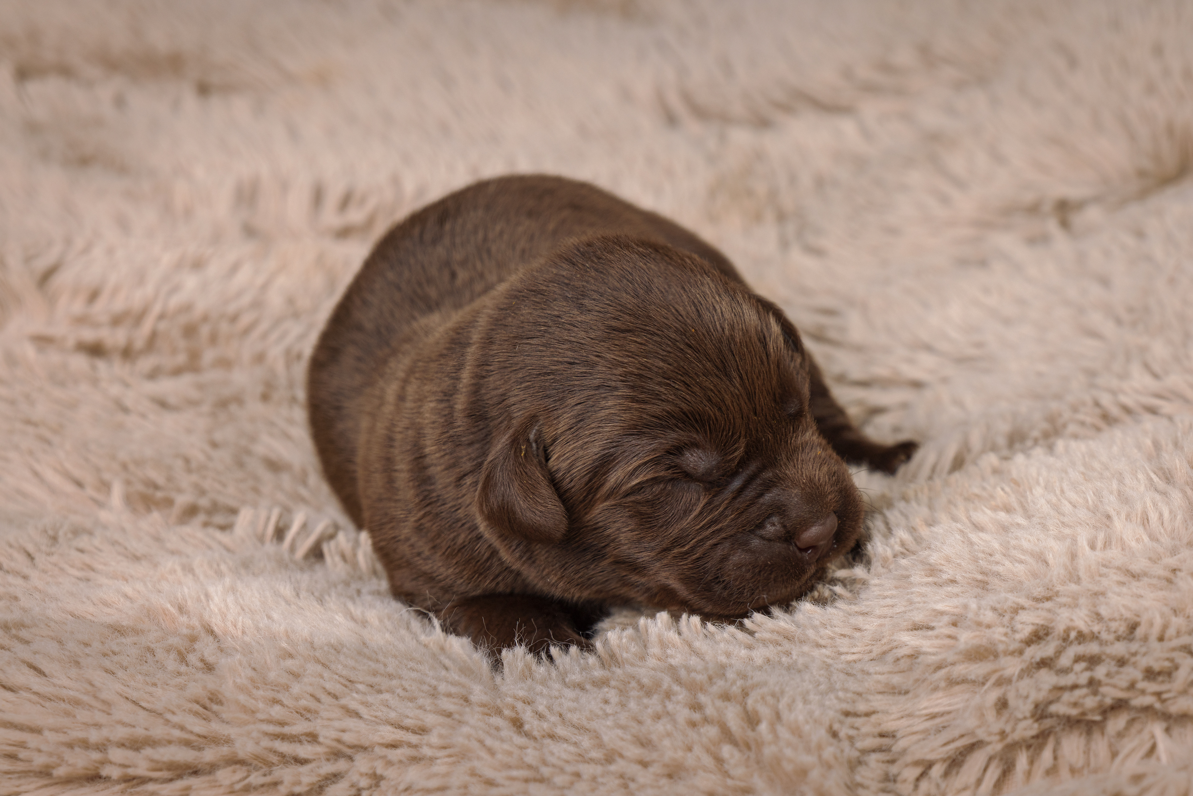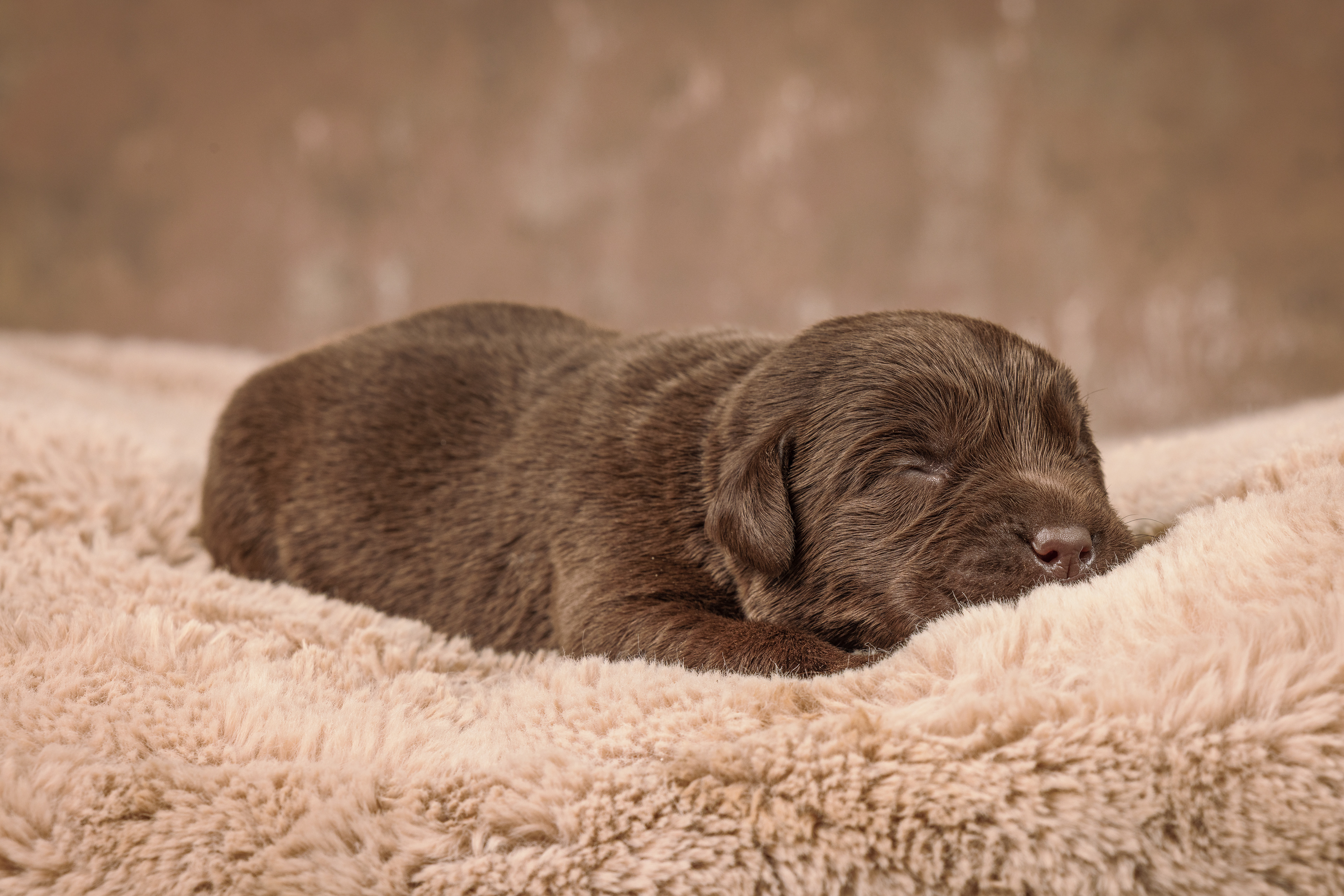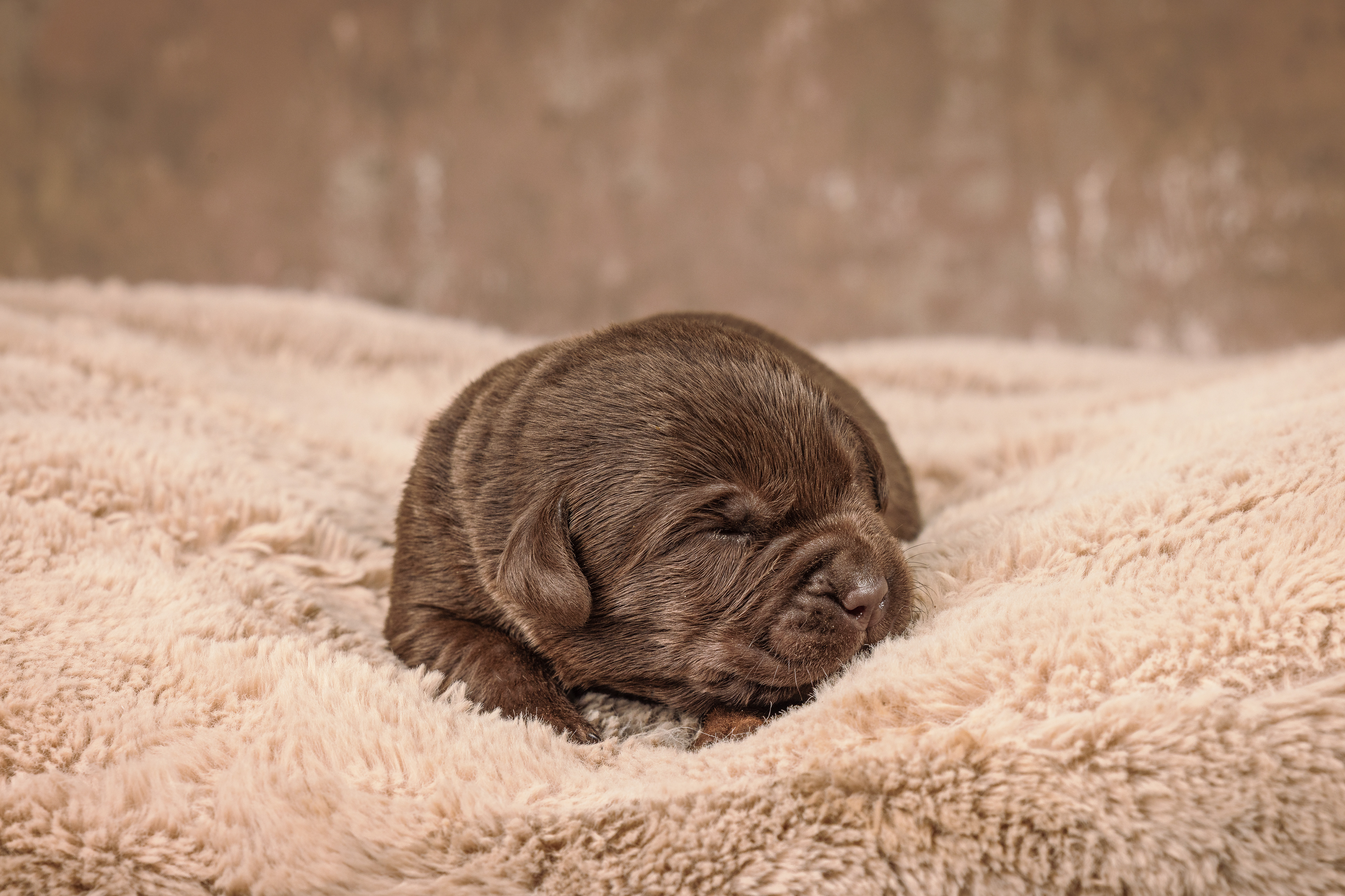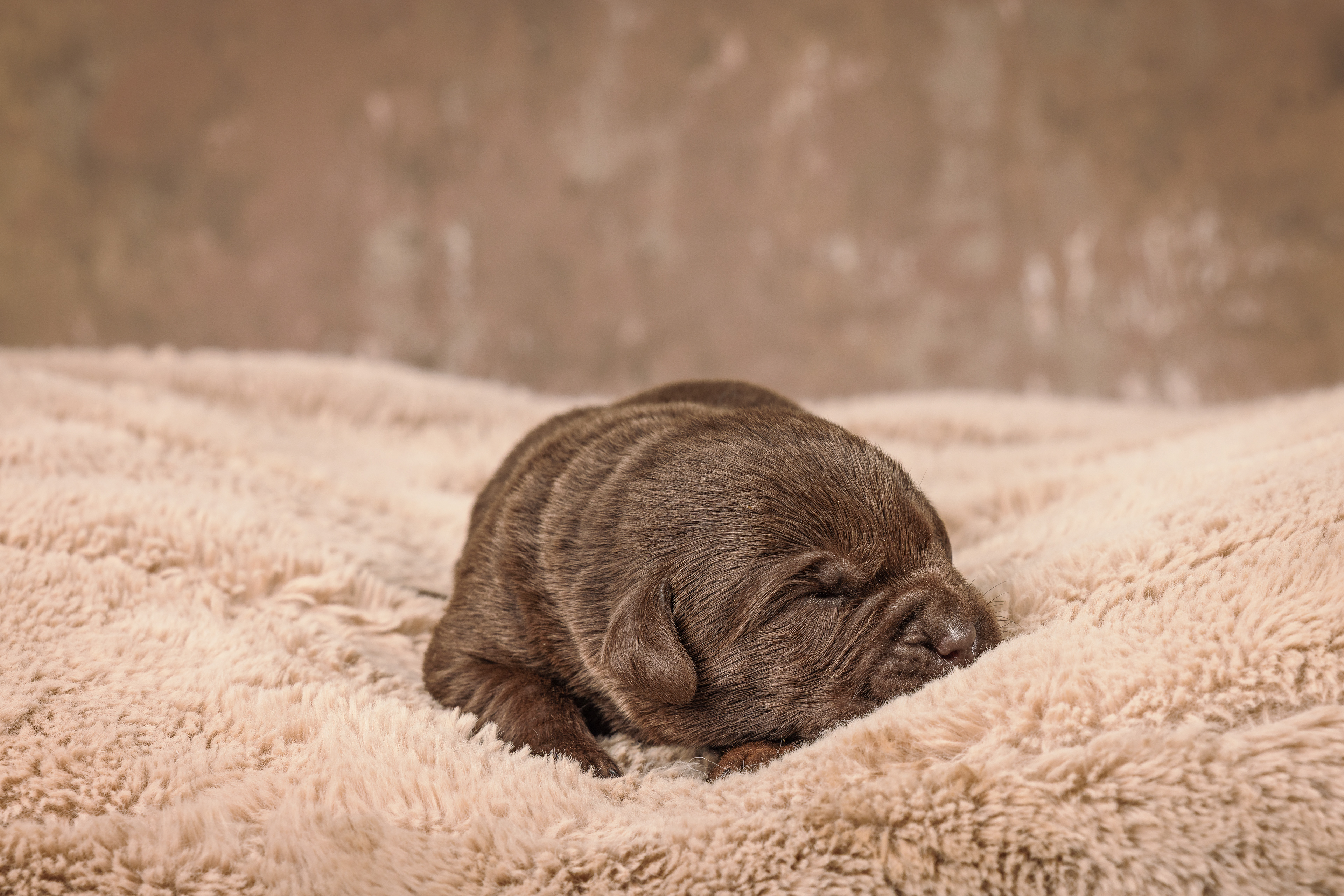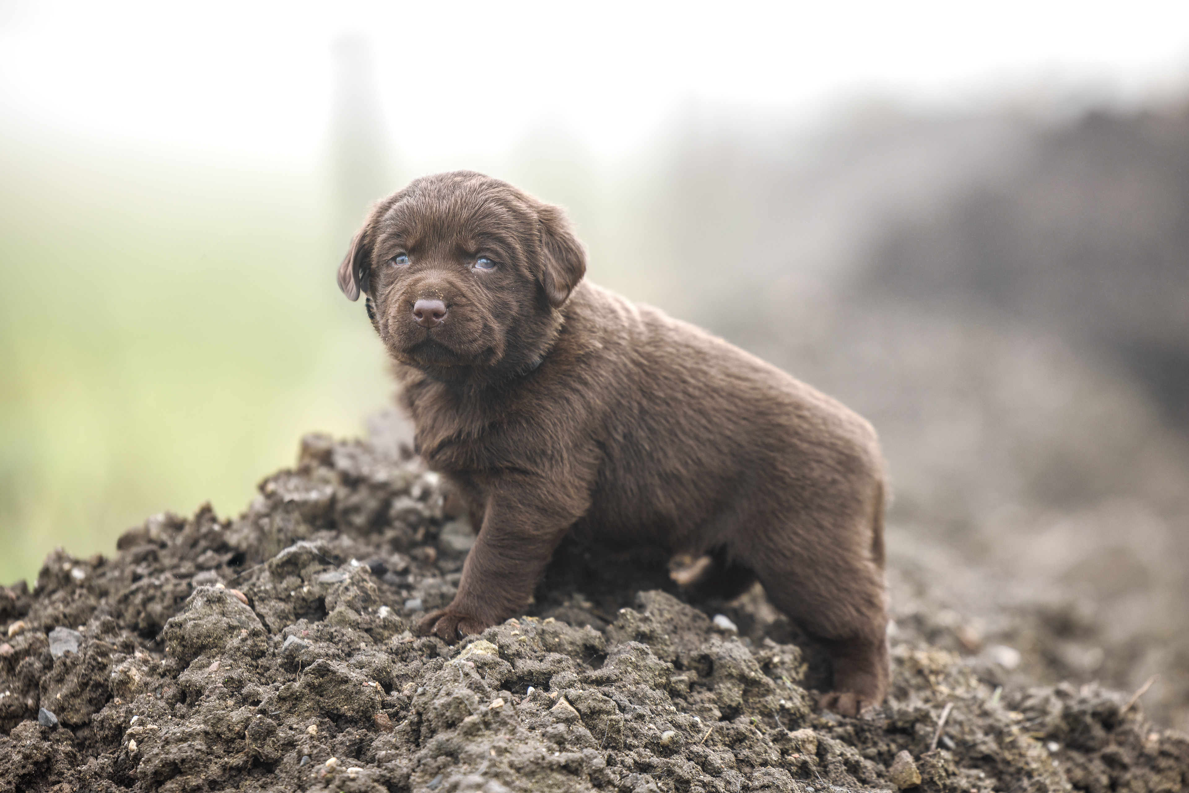 Het is vandaag een hele mistige dag en heb ik alleen maar tijd om 2 pups te kunnen fotograferen. Een bruin reutje en een zwart reutje. Wat zijn ze nog klein als ze buiten komen!