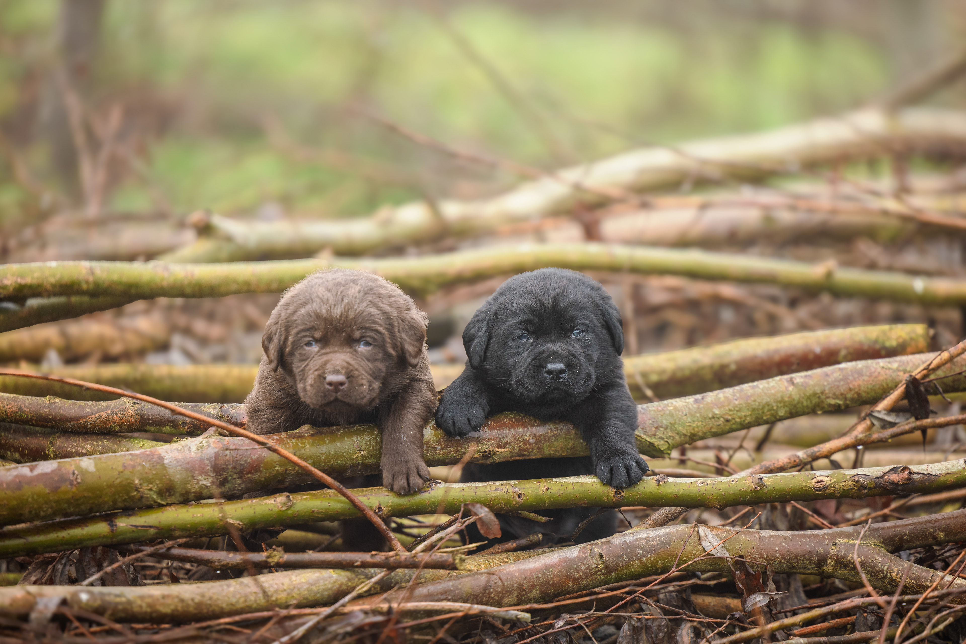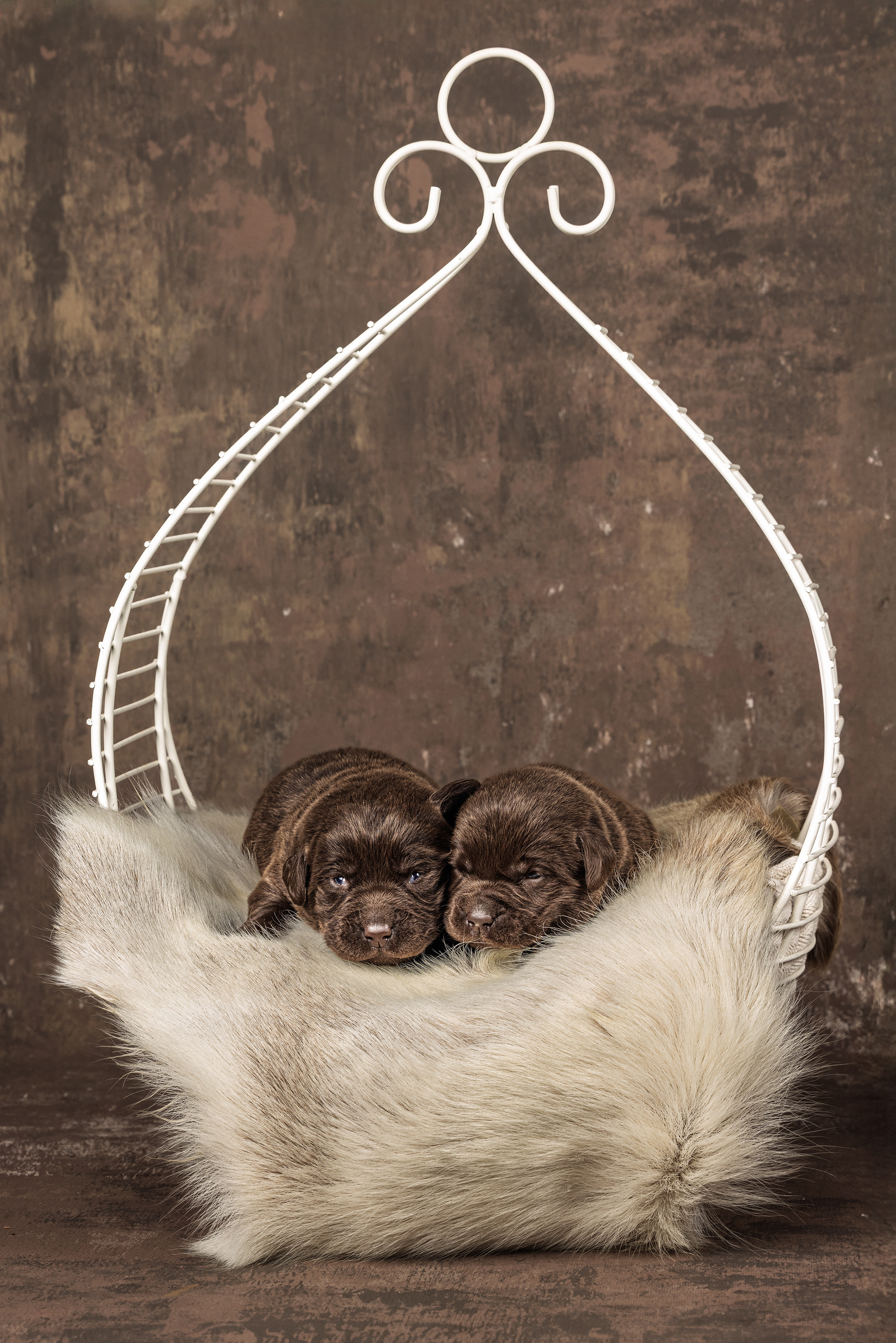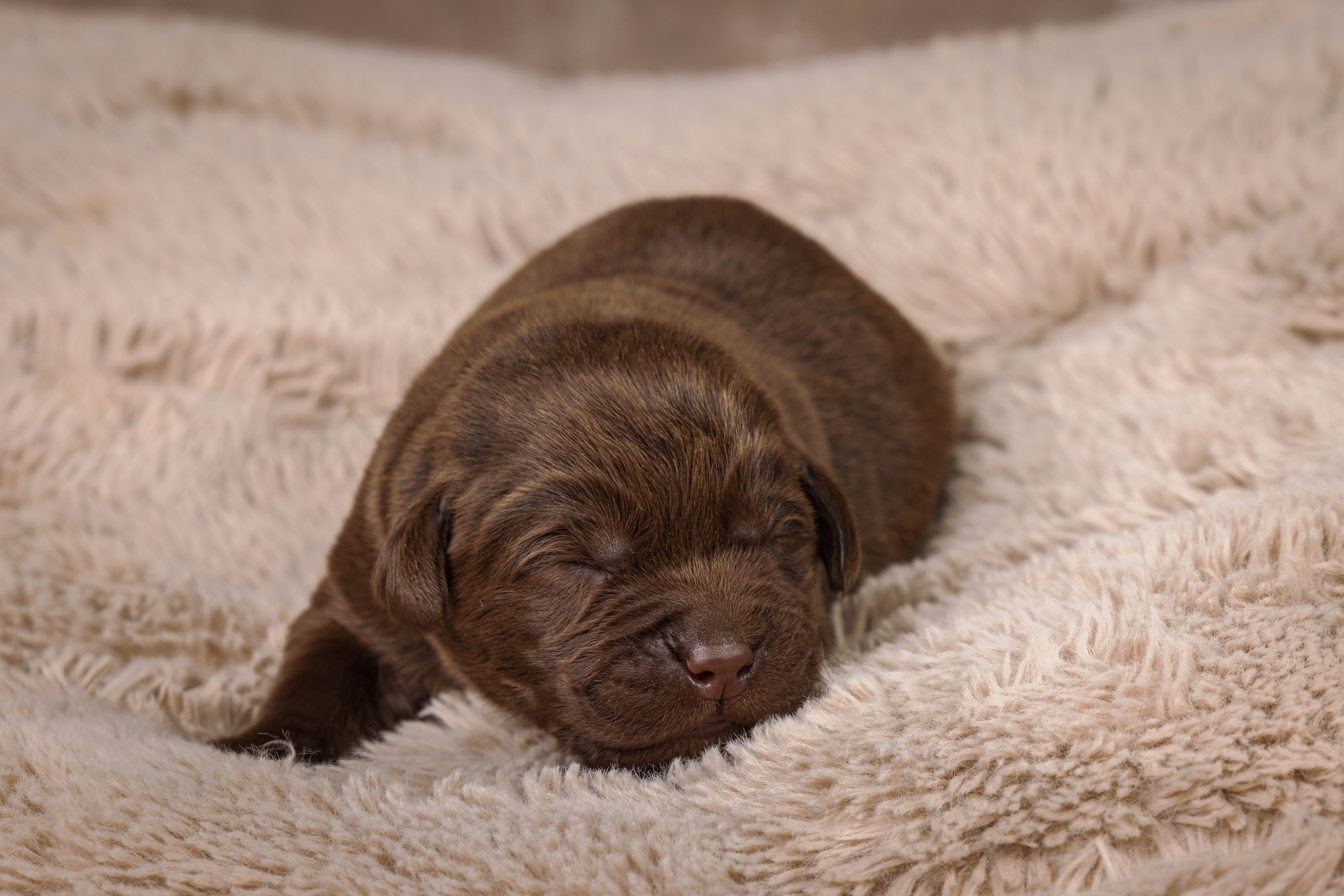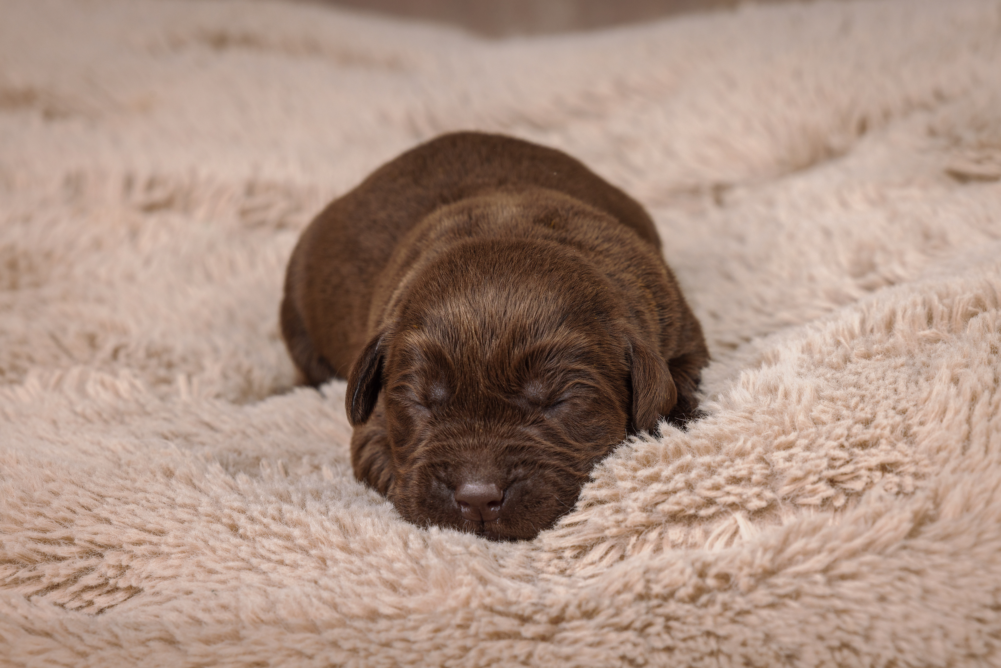 Het is vandaag een hele mistige dag en heb ik alleen maar tijd om 2 pups te kunnen fotograferen. Een bruin reutje en een zwart reutje. Wat zijn ze nog klein als ze buiten komen!