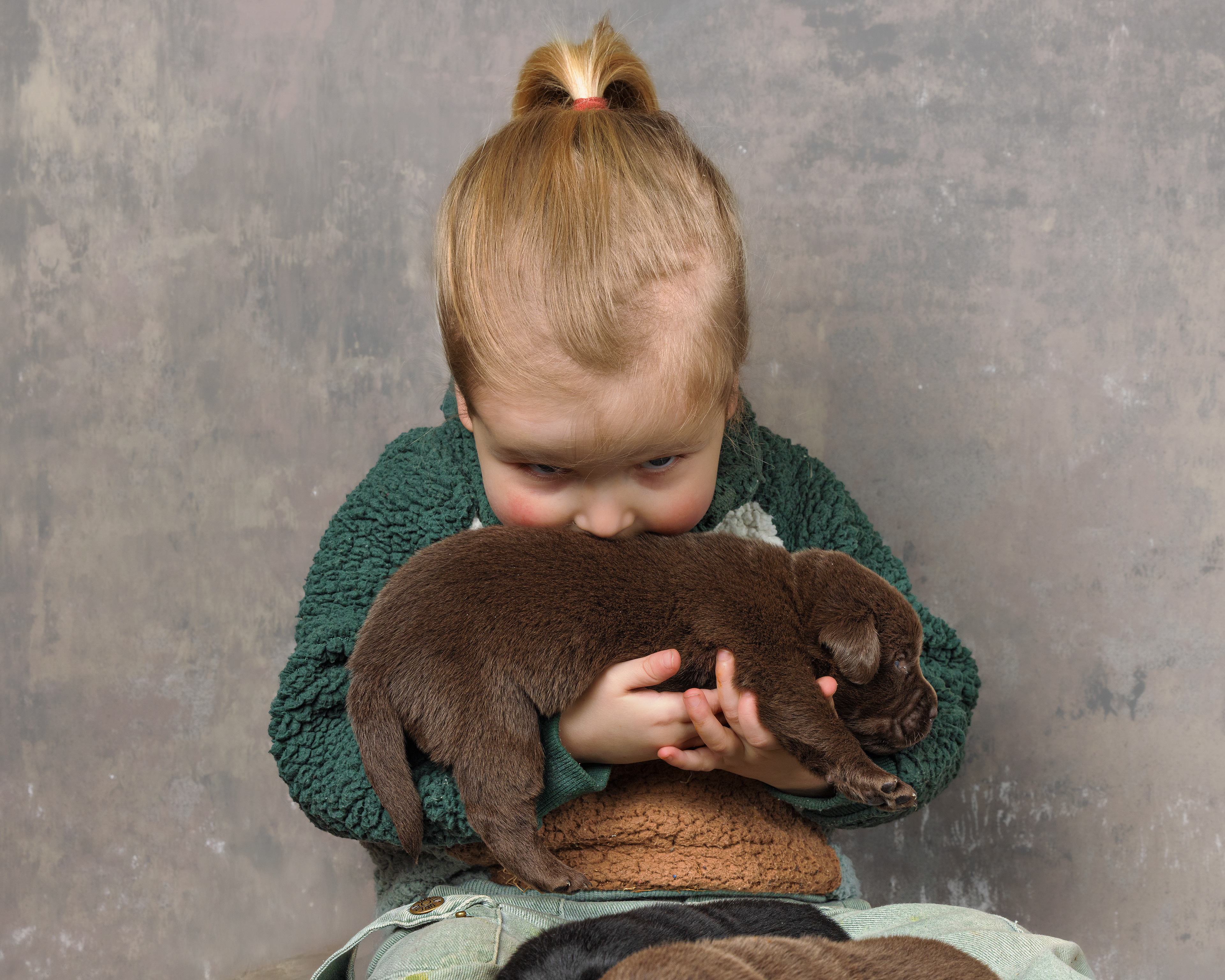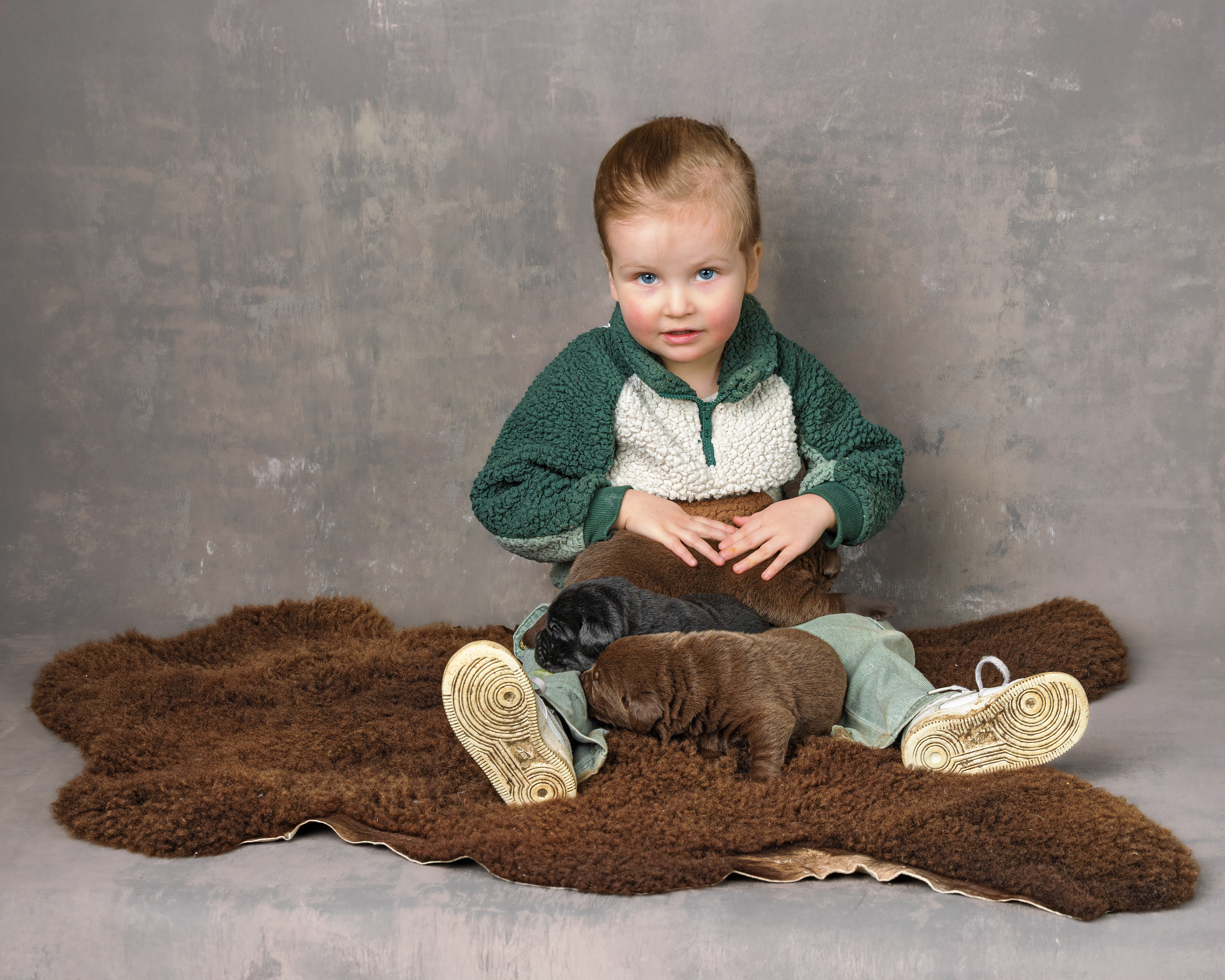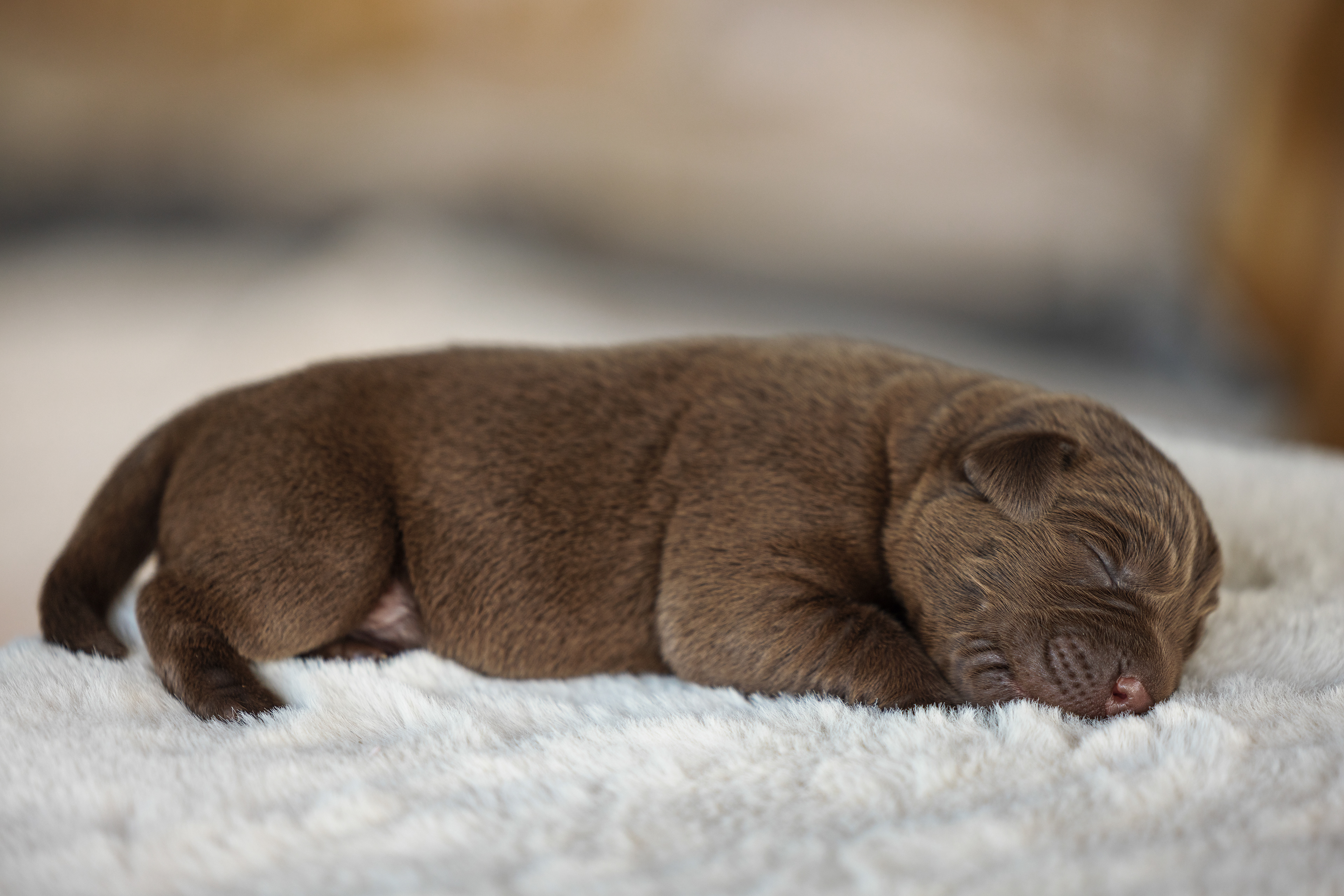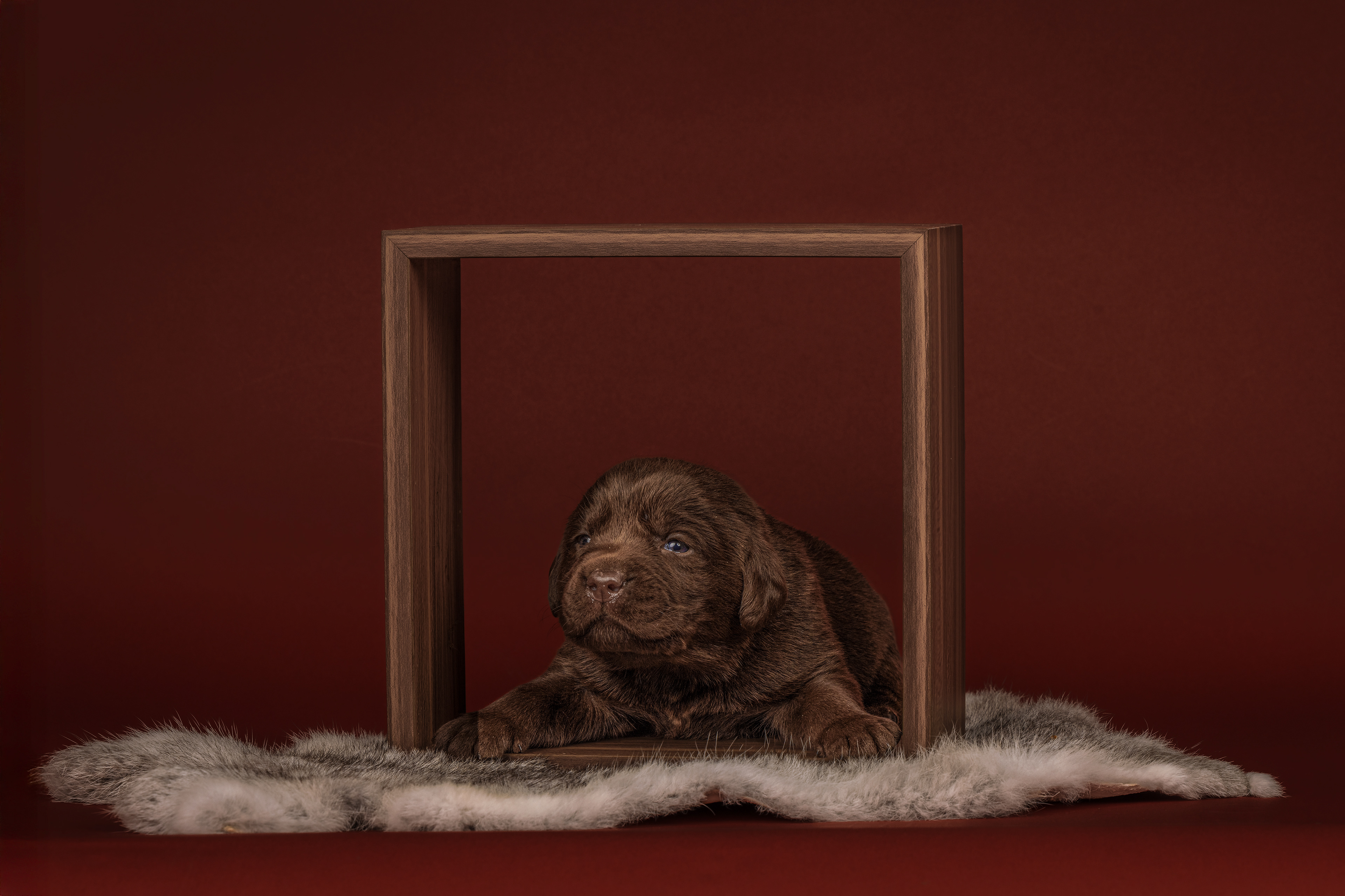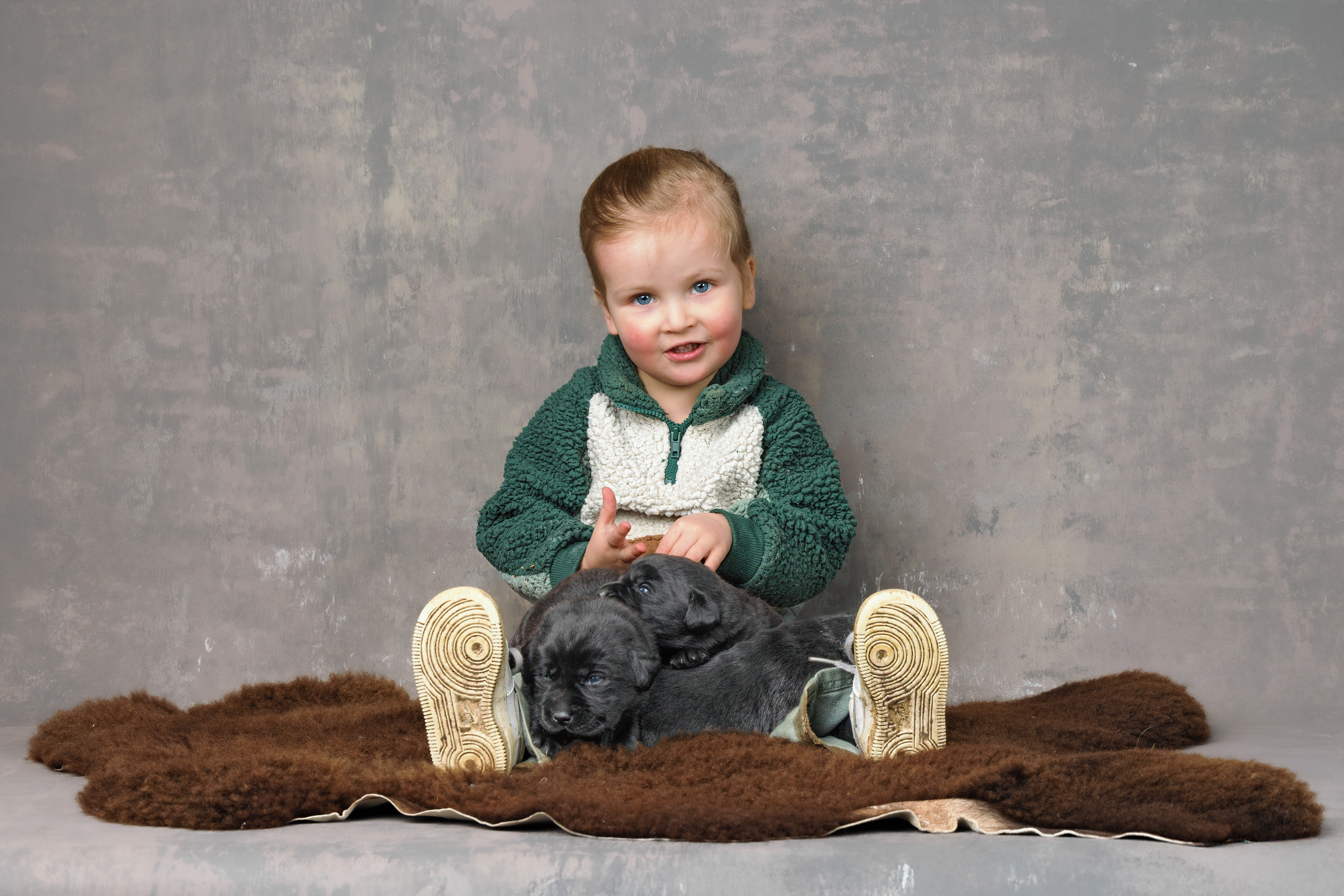 Het is vandaag een hele mistige dag en heb ik alleen maar tijd om 2 pups te kunnen fotograferen. Een bruin reutje en een zwart reutje. Wat zijn ze nog klein als ze buiten komen!