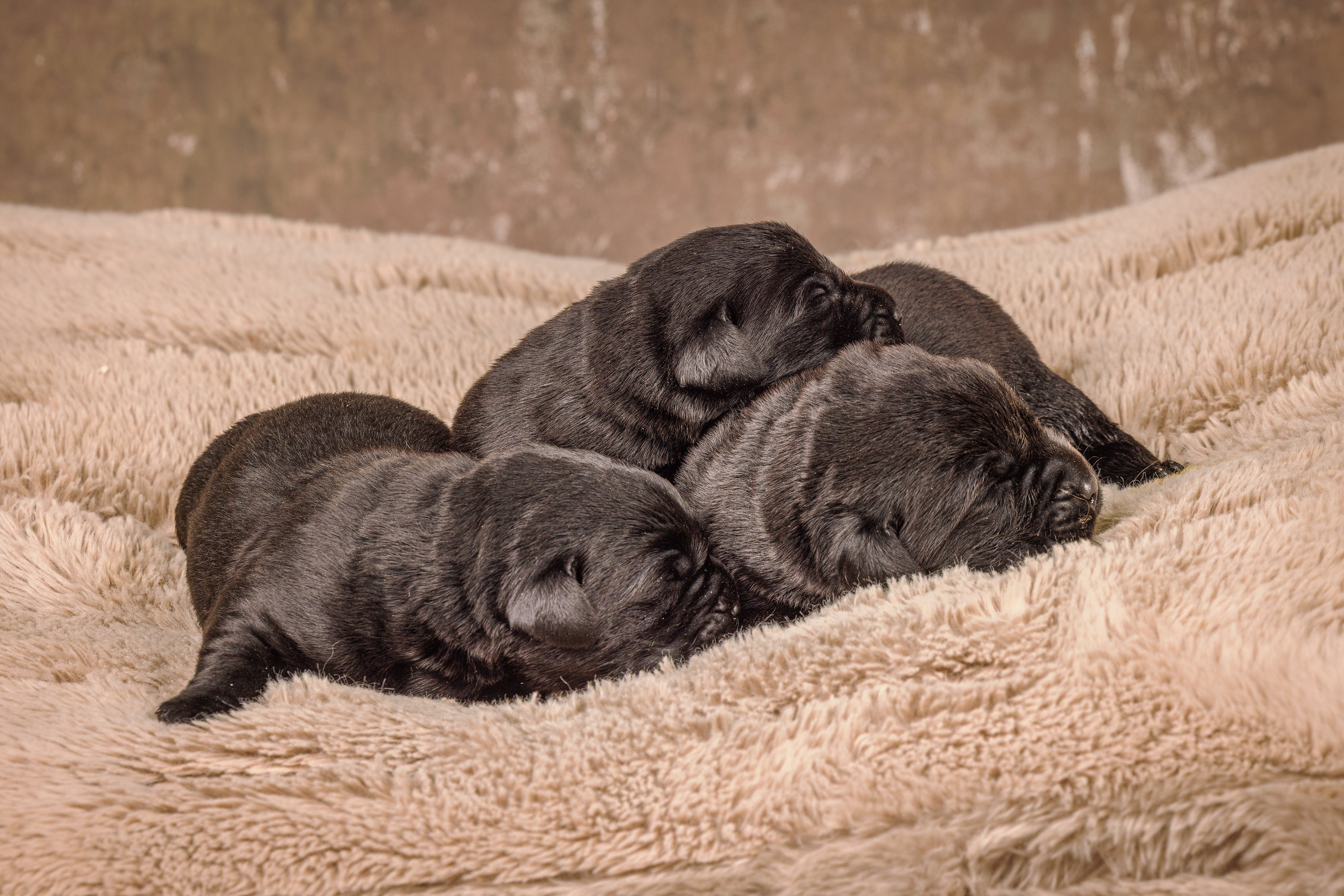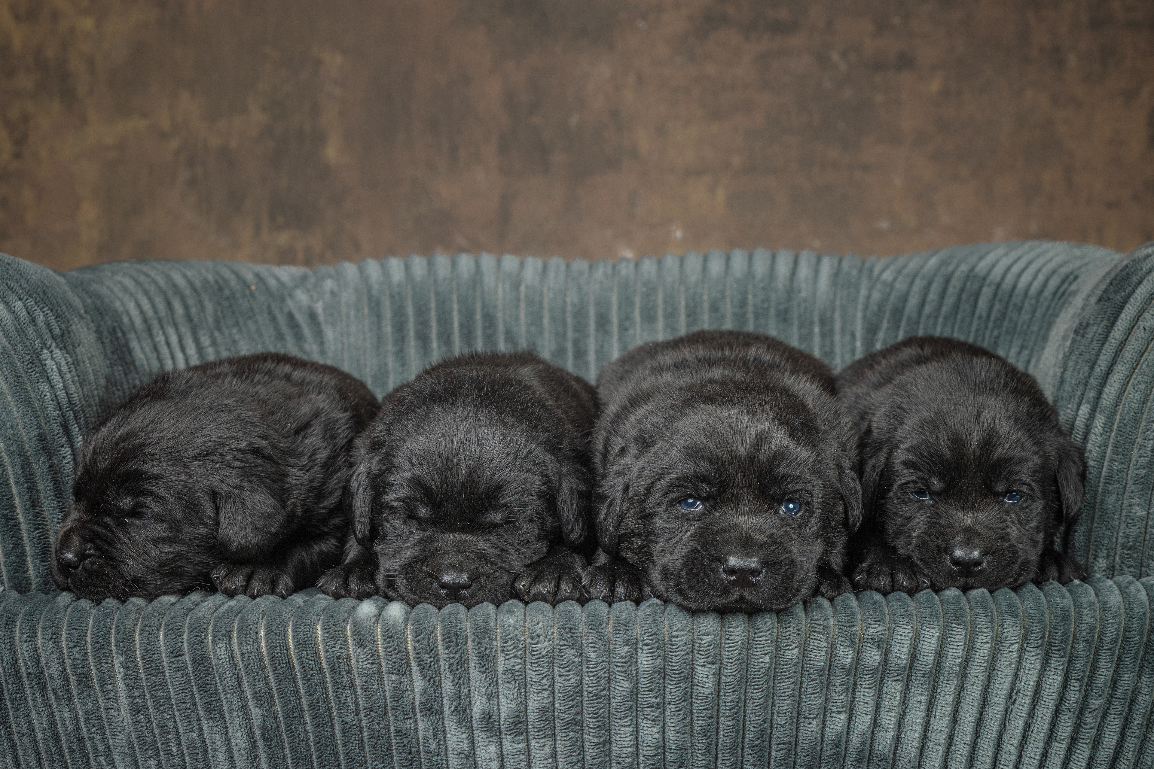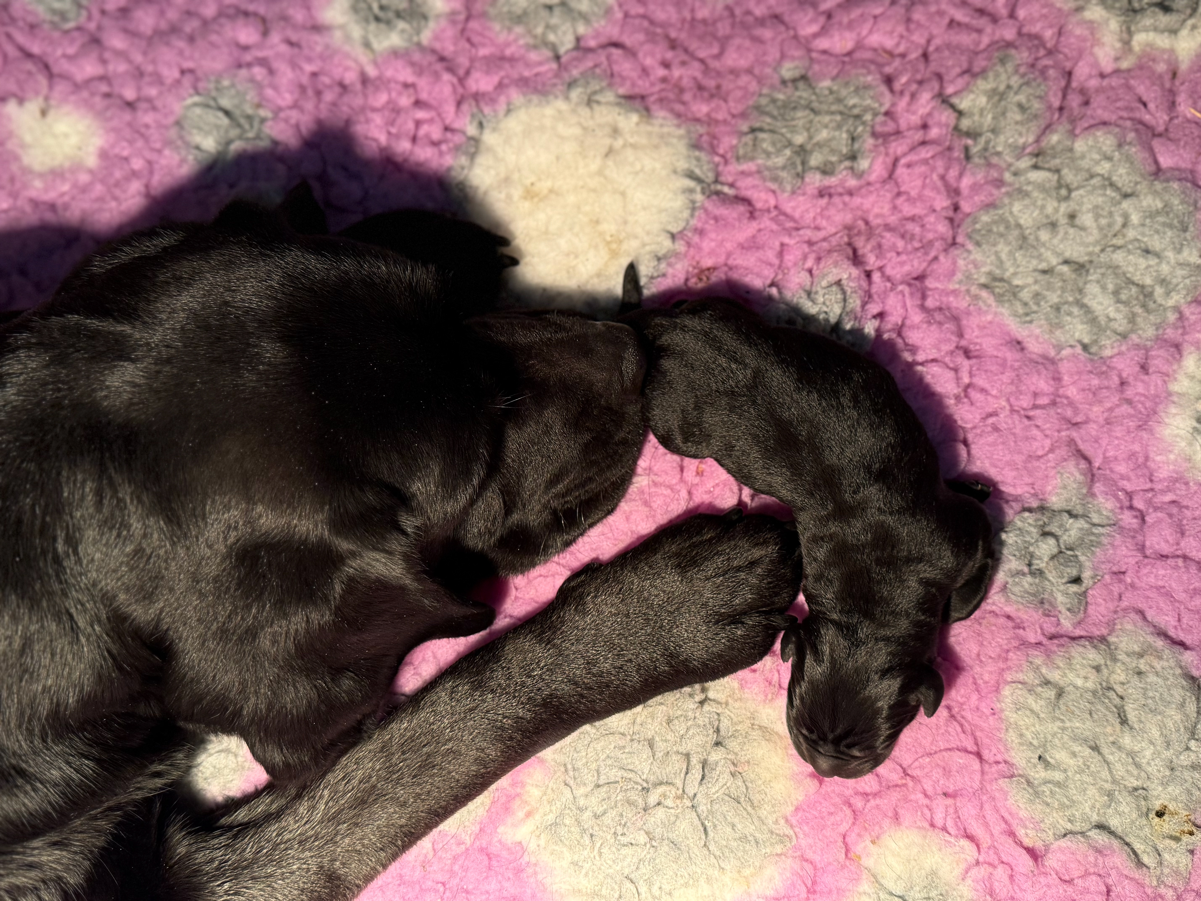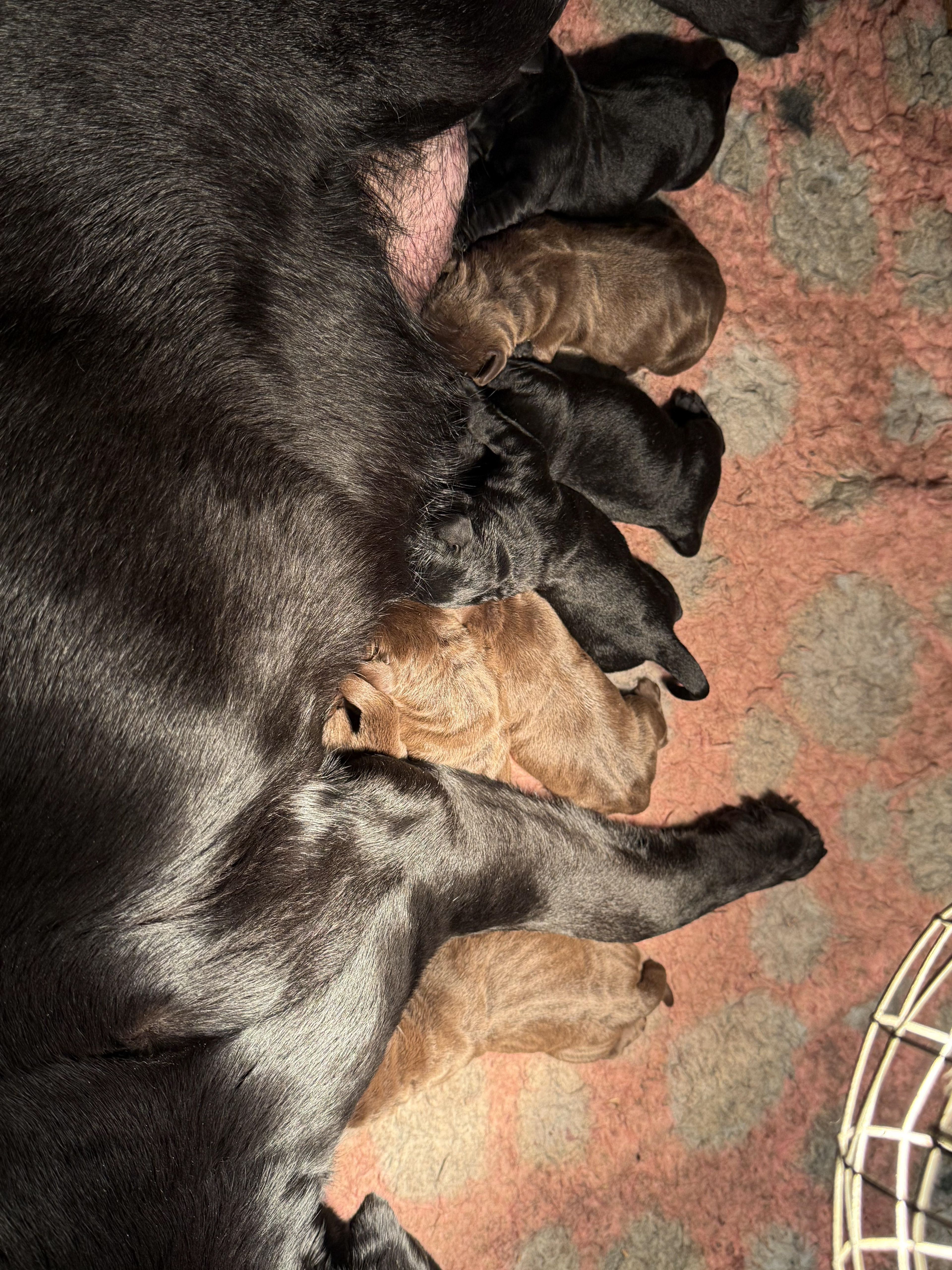 We beginnen met de zwarte pups; eerste de reutjes, dan alle vier en dan het teefje!