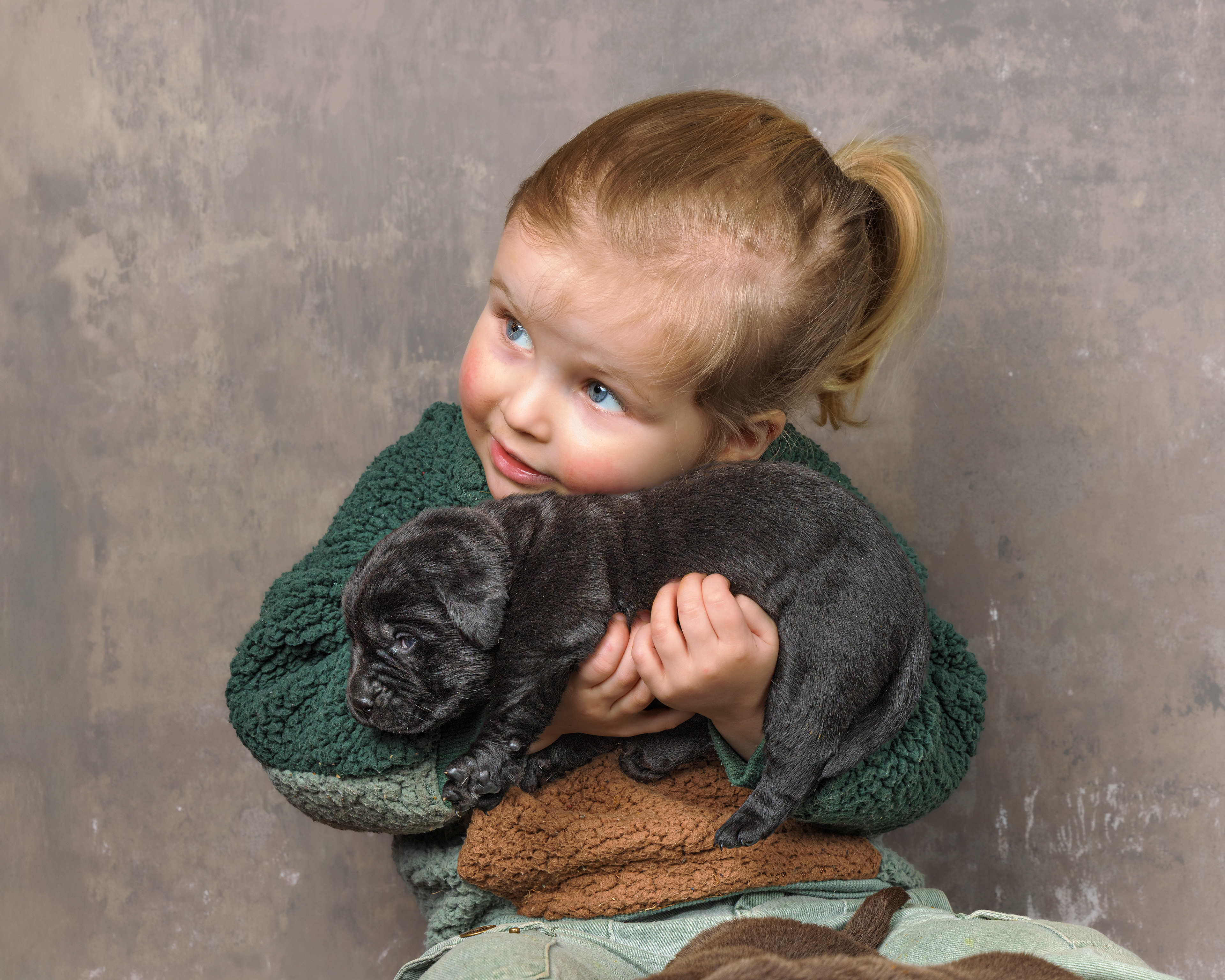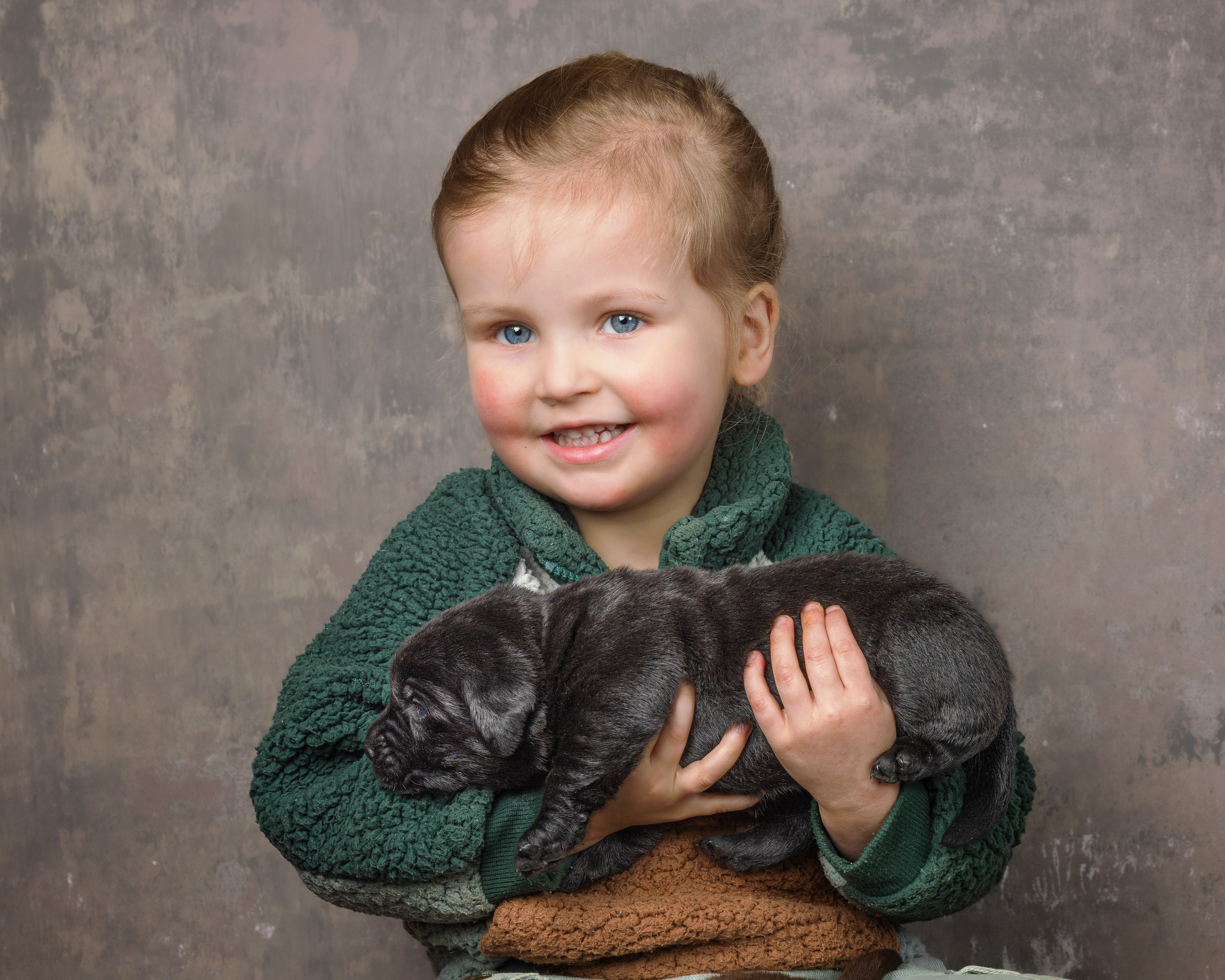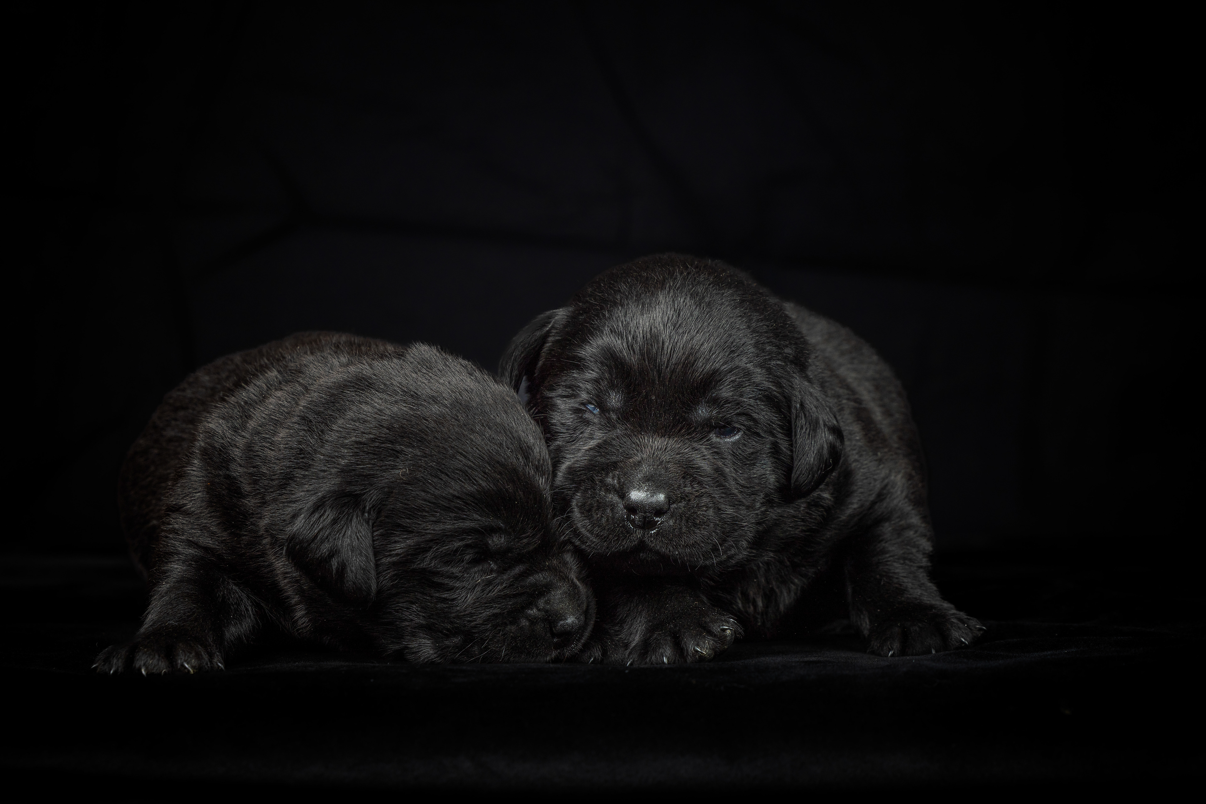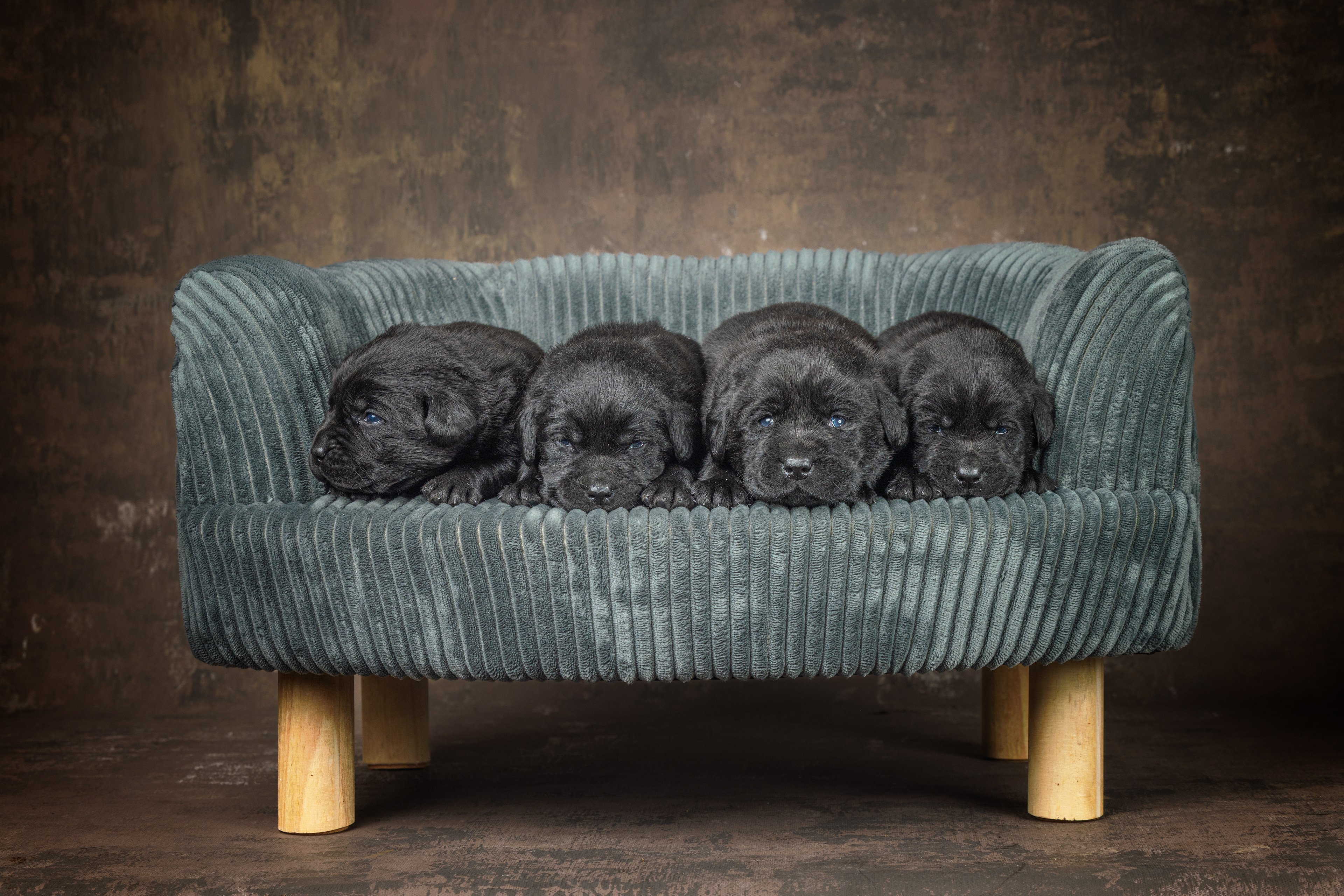 We beginnen met de zwarte pups; eerste de reutjes, dan alle vier en dan het teefje!