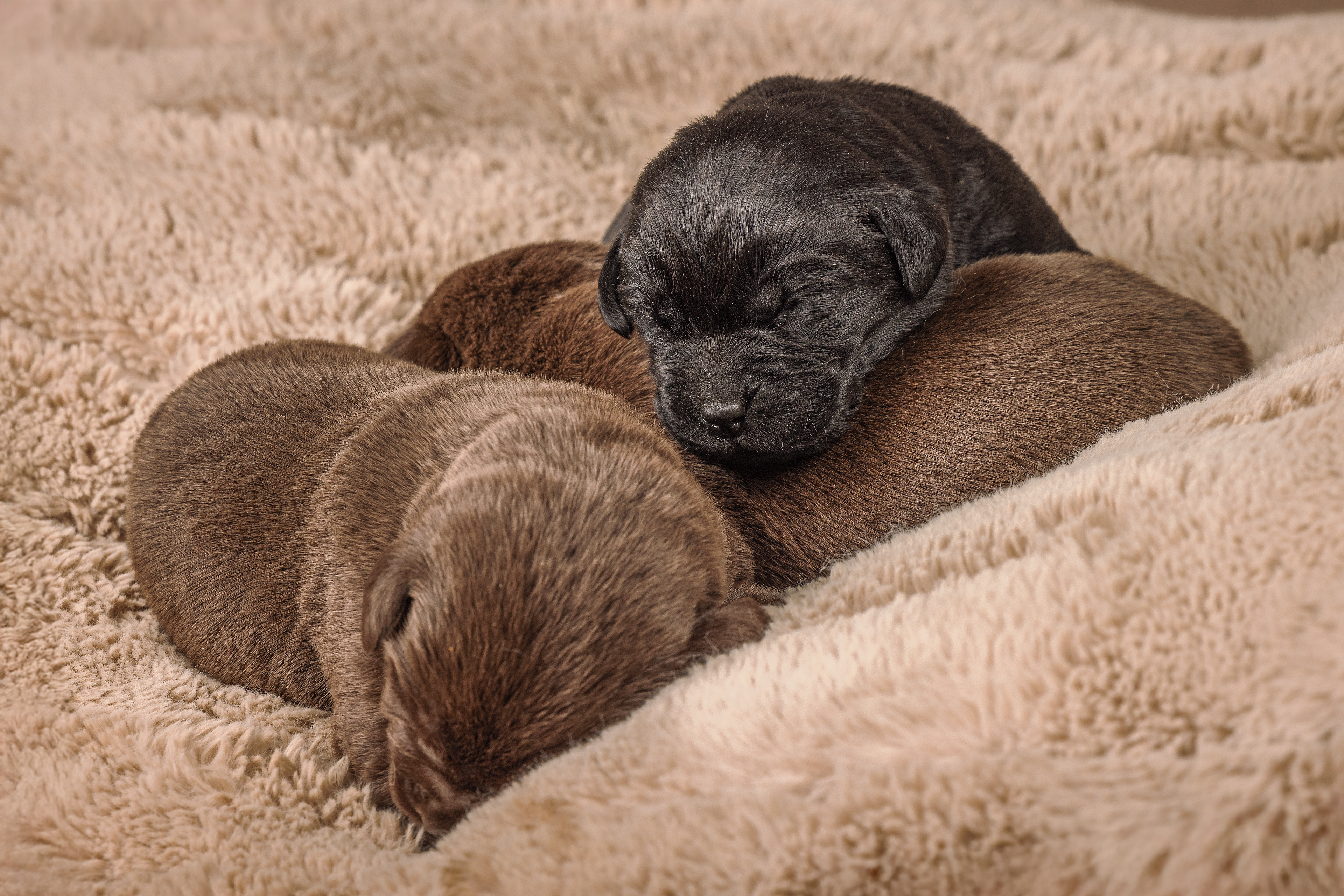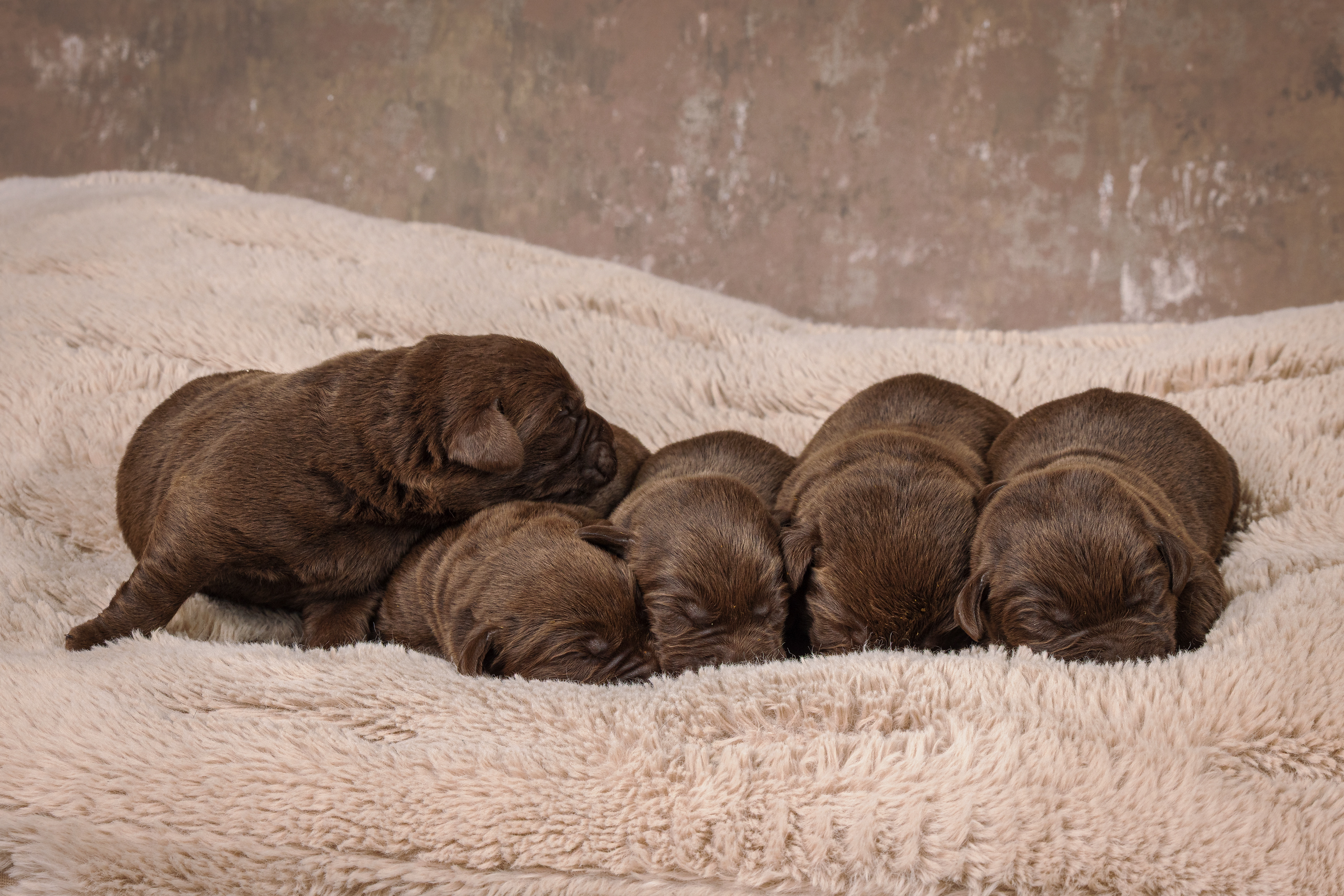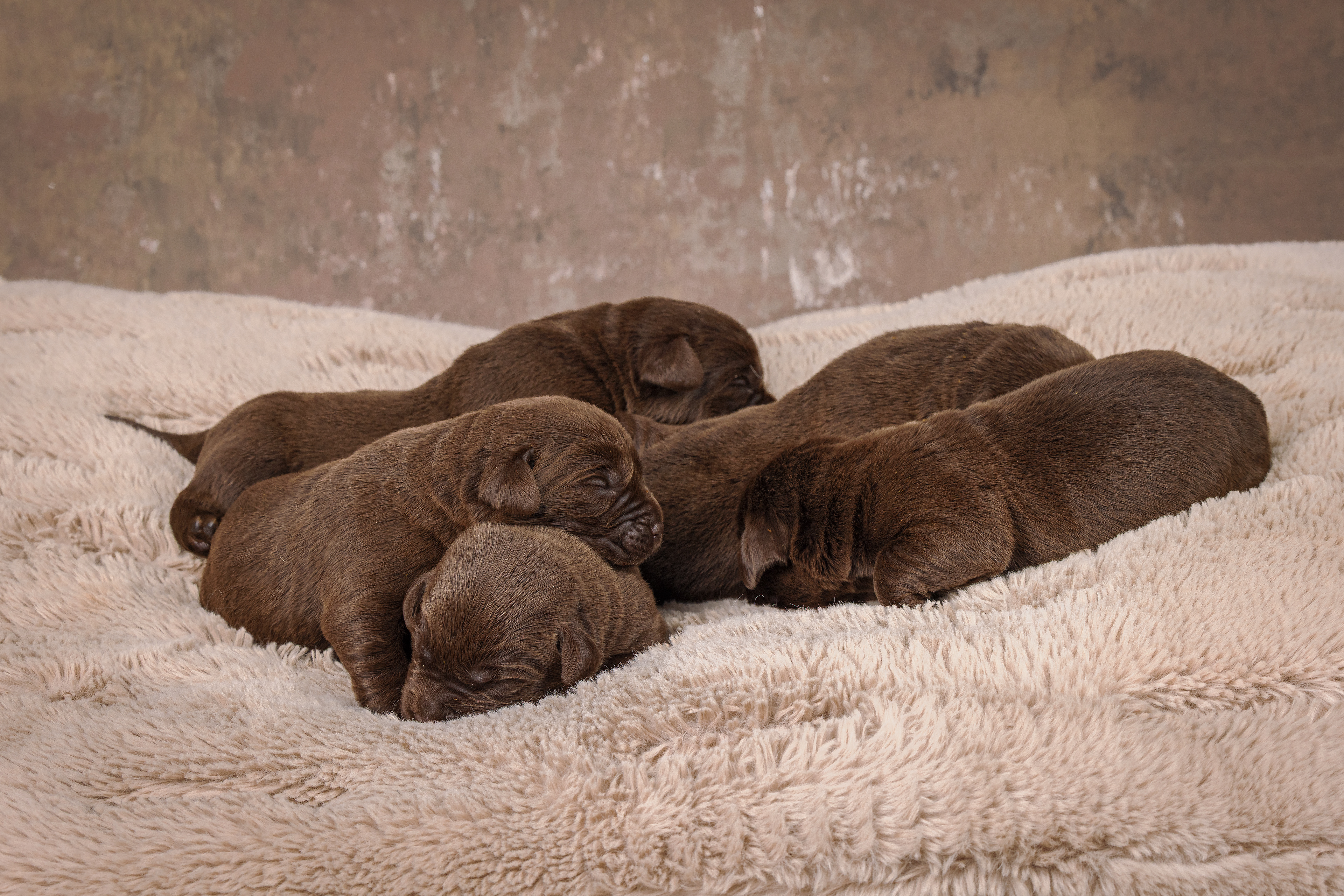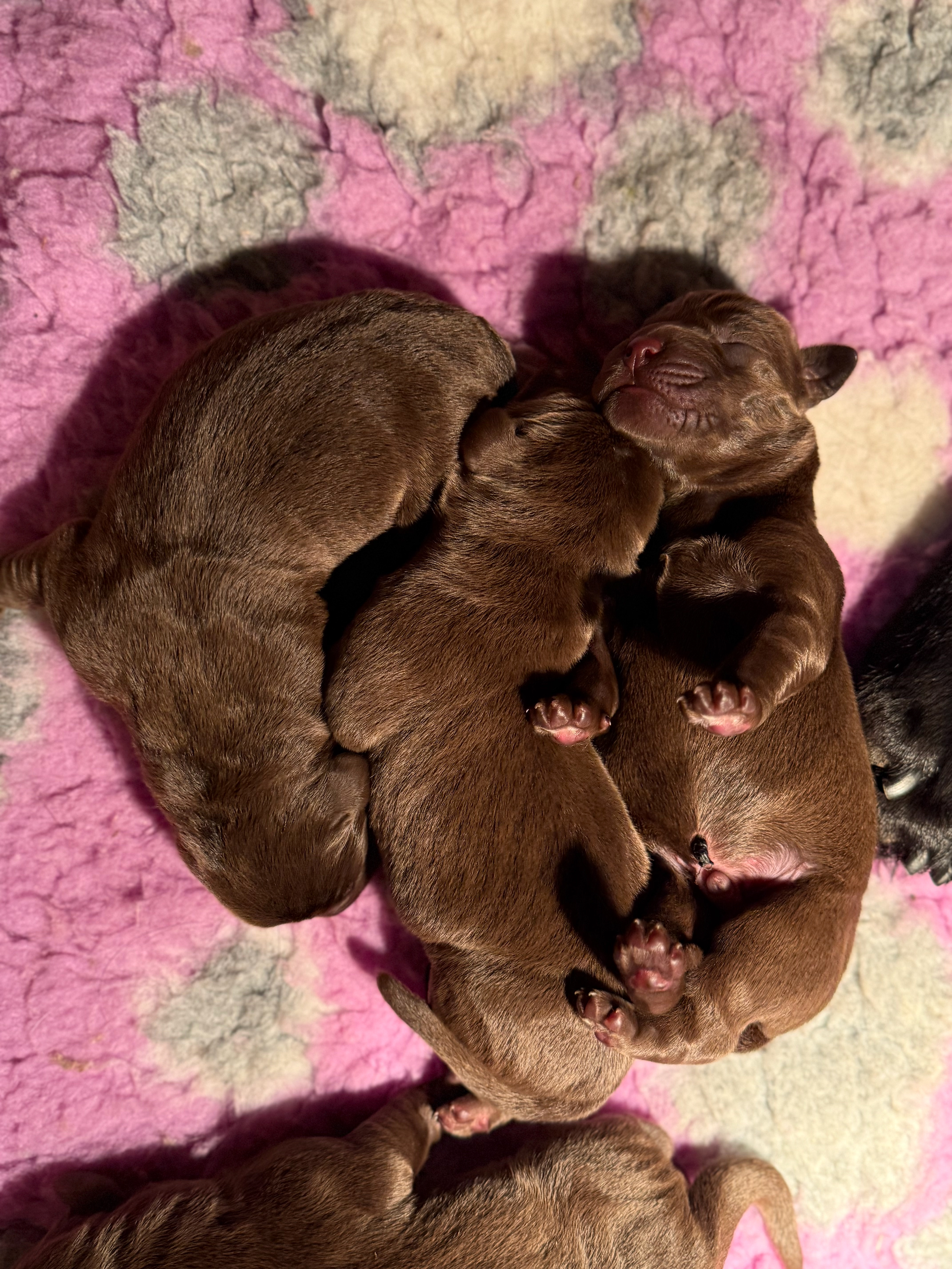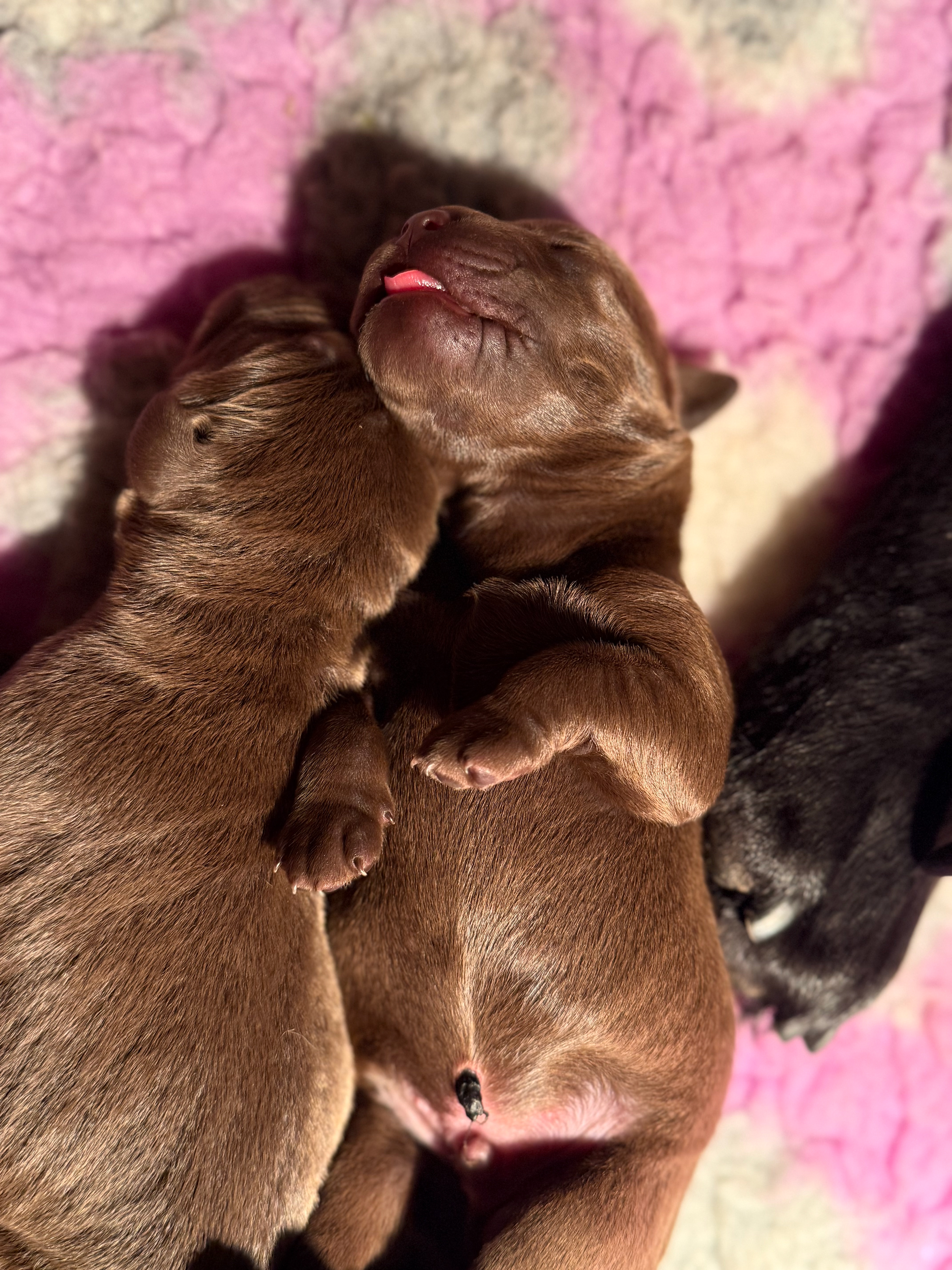 Daarna de bruine pups; eerst de teefjes en daarna het betere stapelwerk !