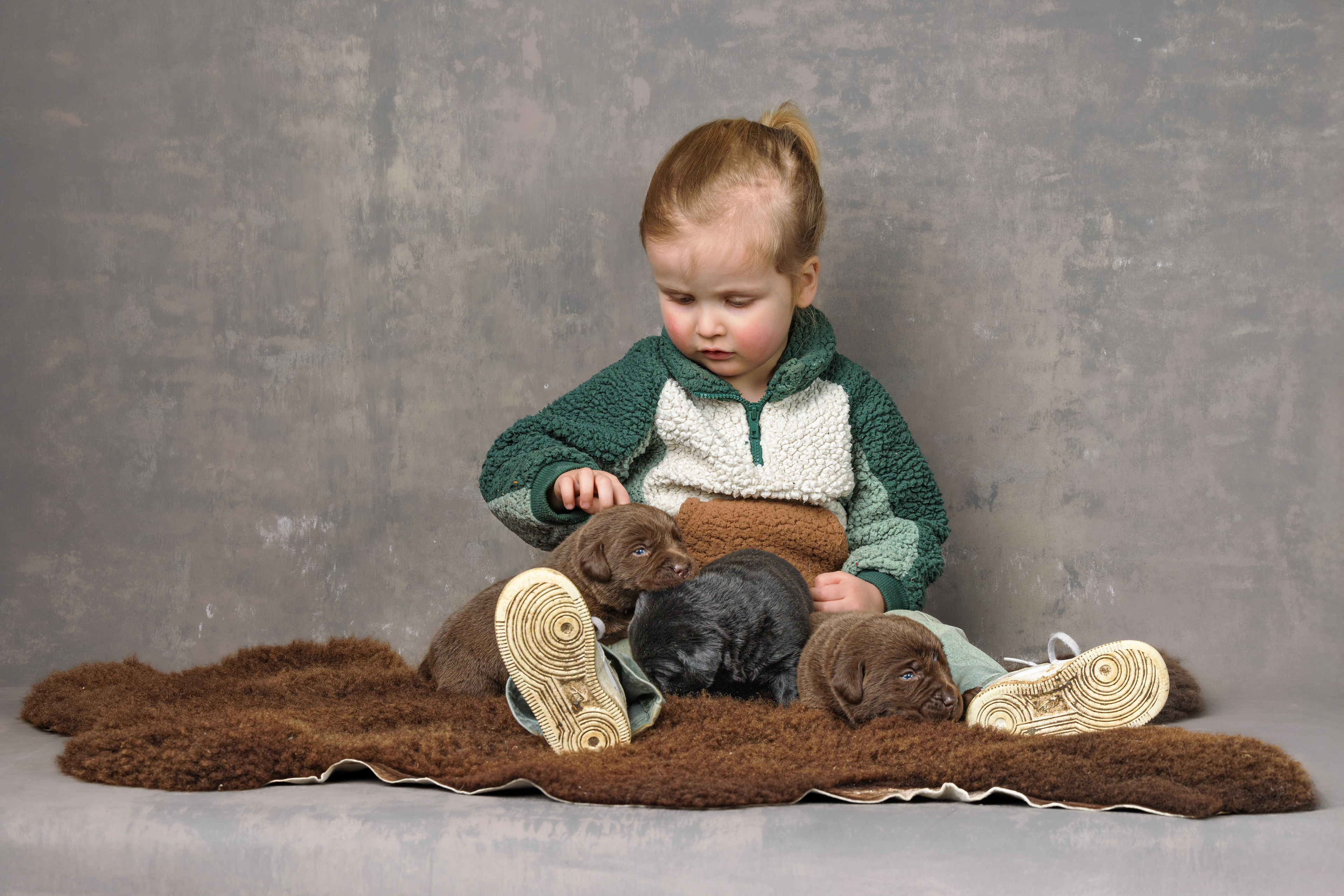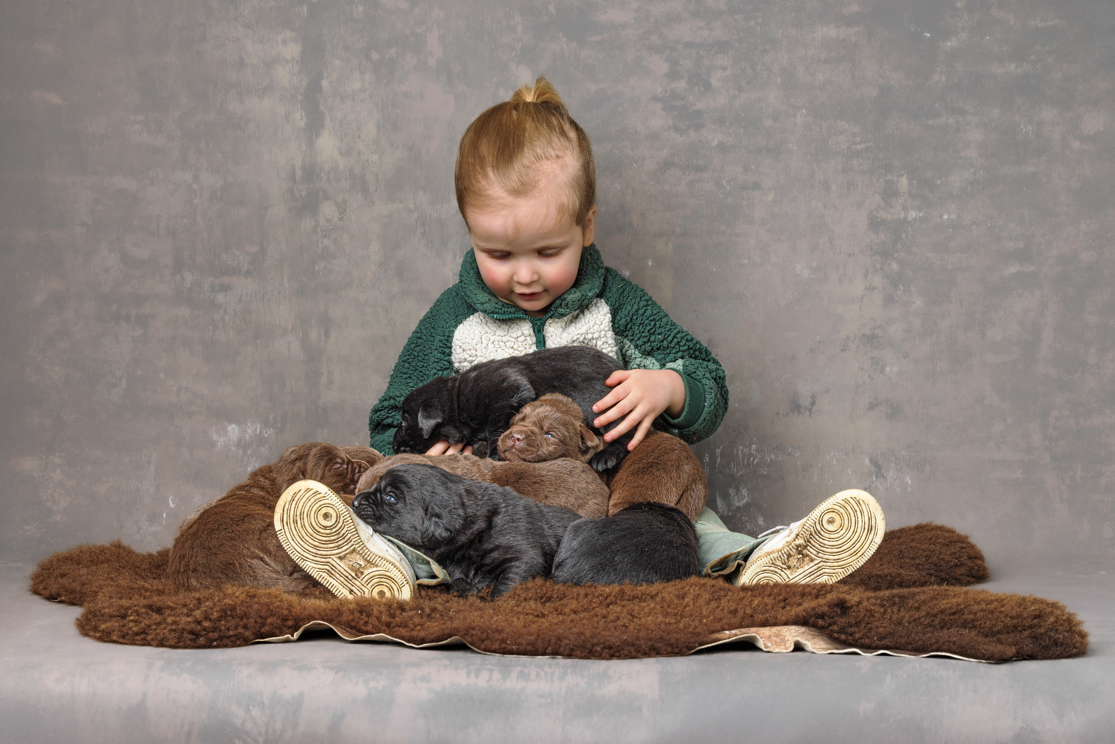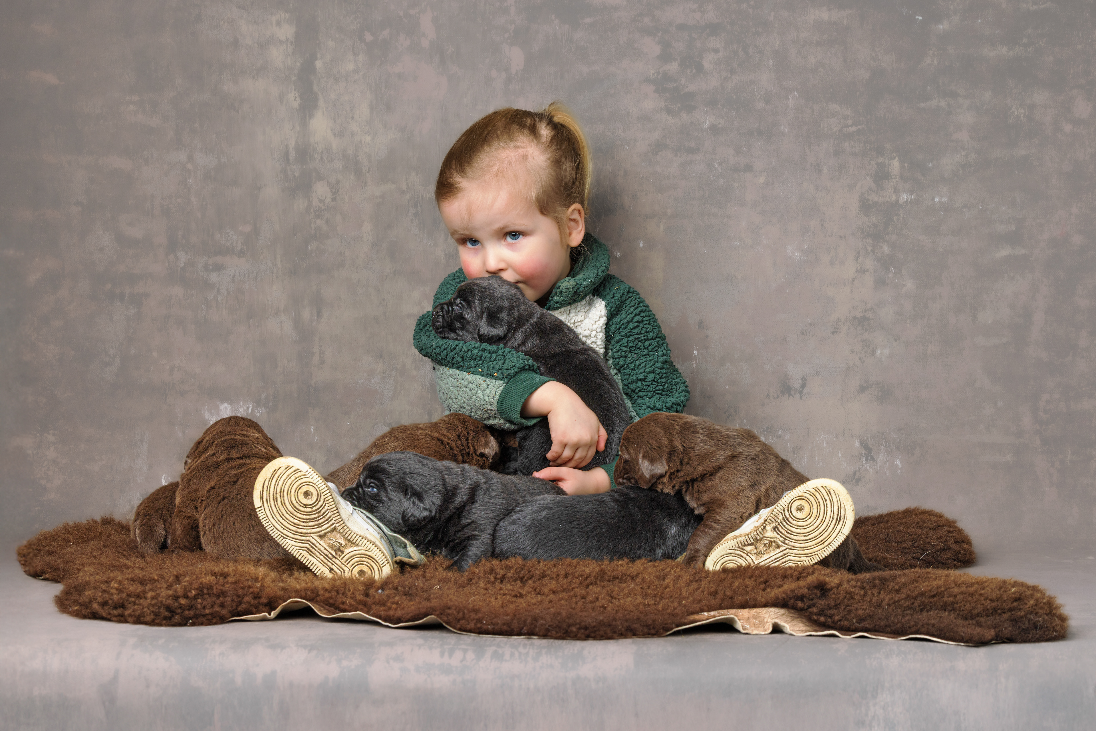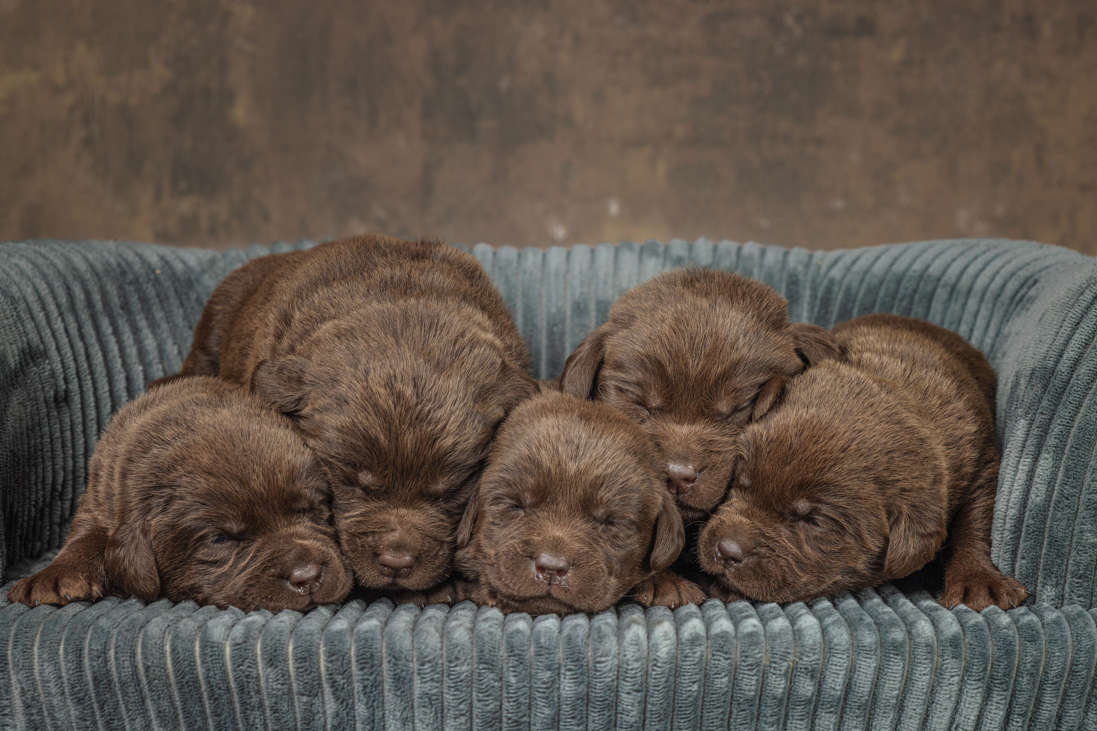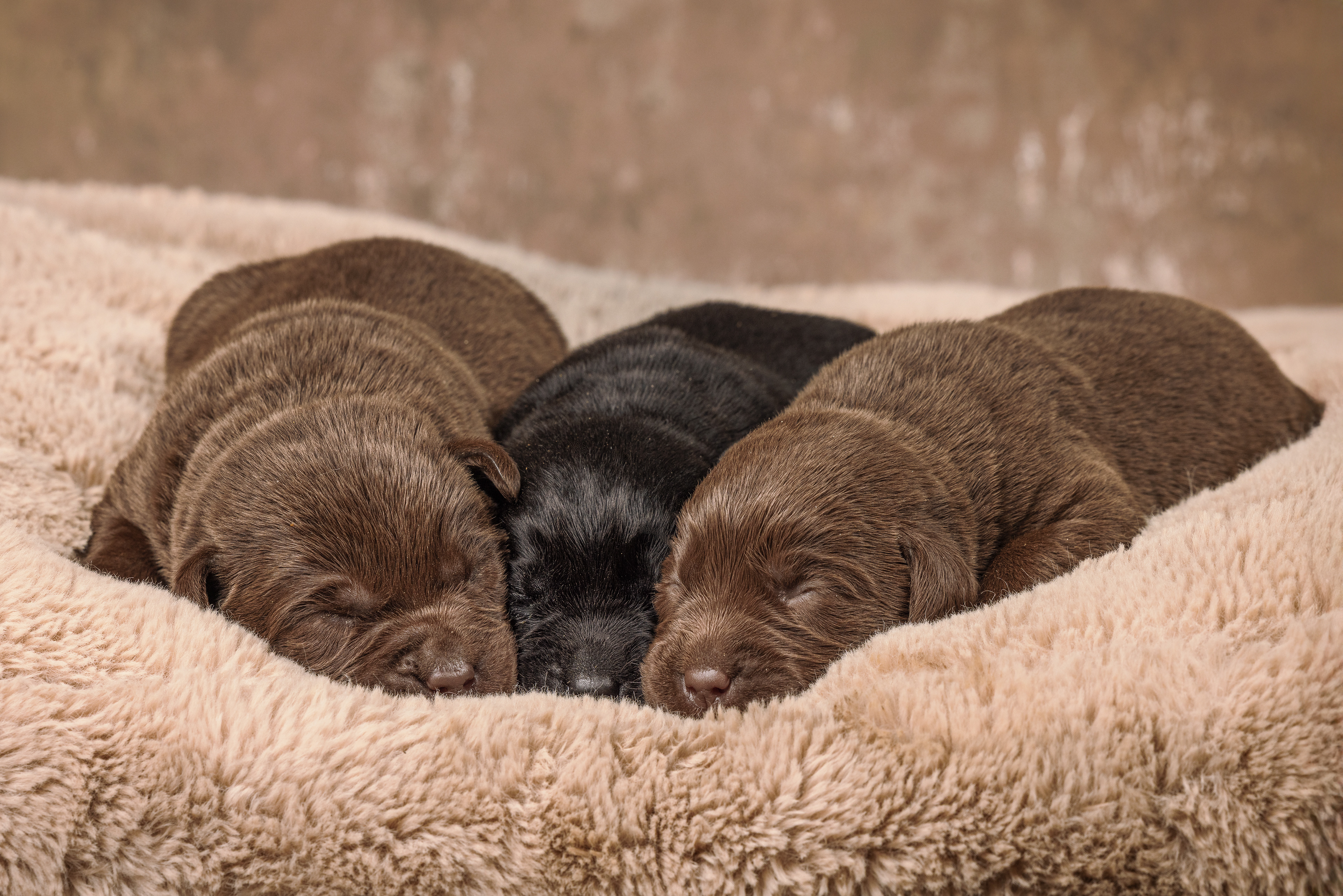Daarna de bruine pups; eerst de teefjes en daarna het betere stapelwerk !