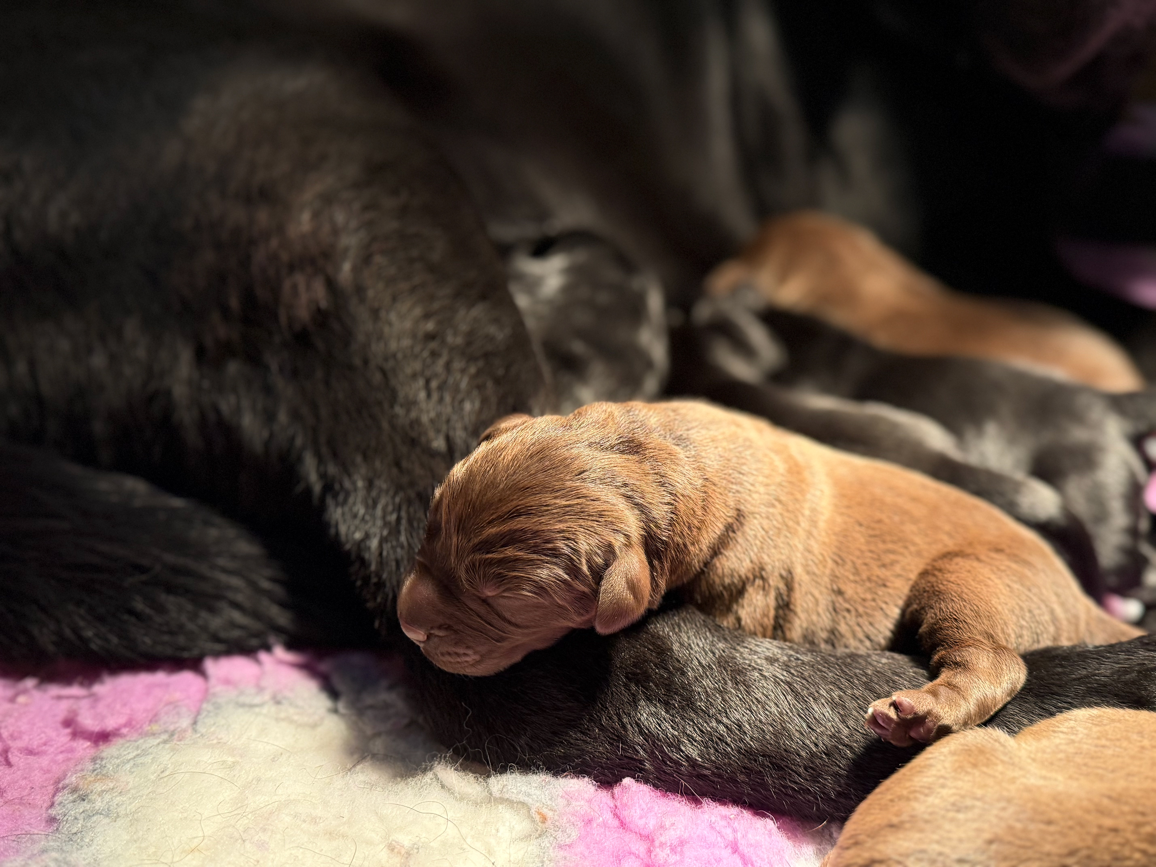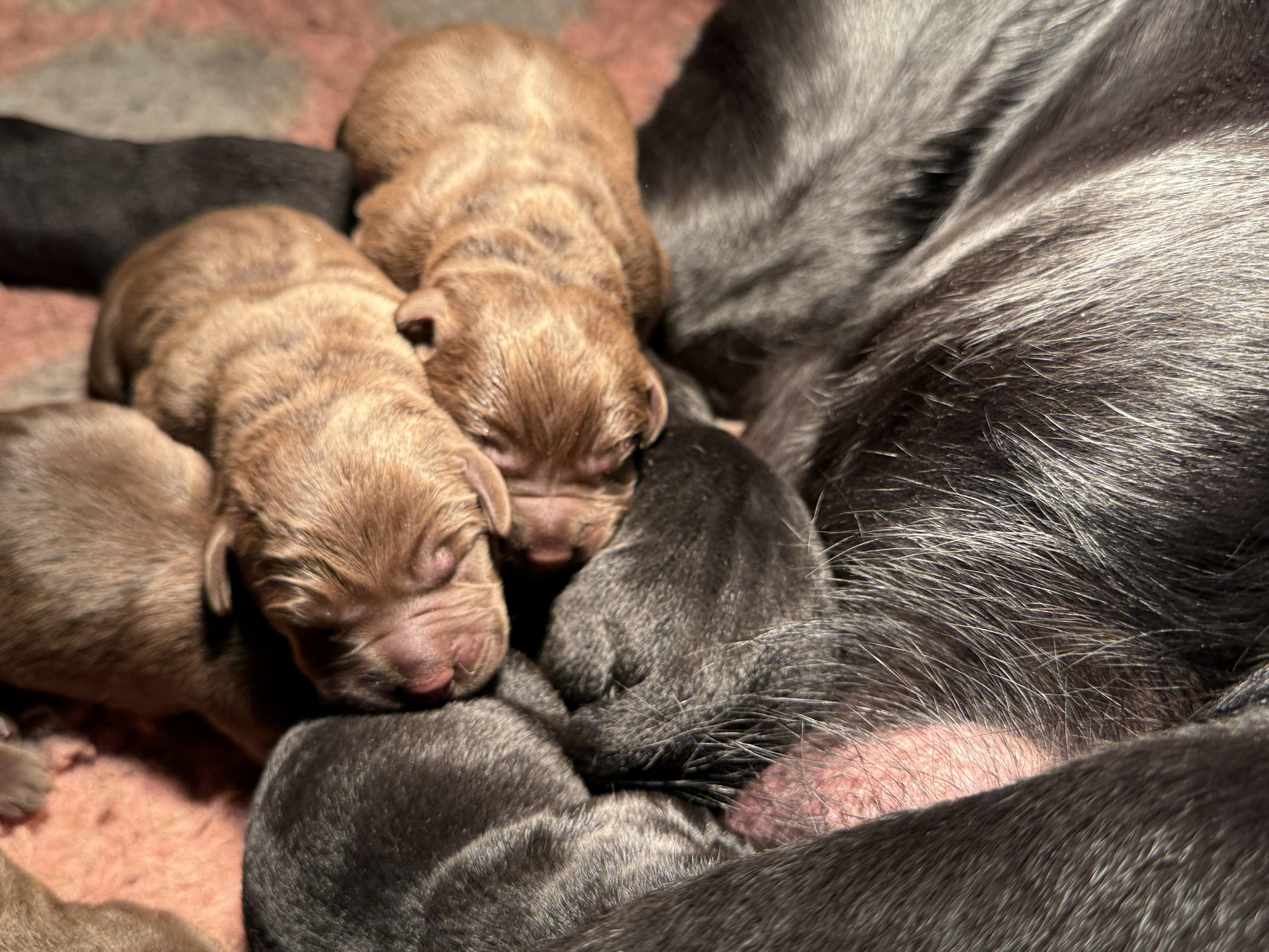 Afgelopen zondag 11 januari zijn er bij ons pups geboren uit de combinatie Gi'me your Love of Wundering Heights, Kimmy en Choco Revelation at Road of Princes, Mats.