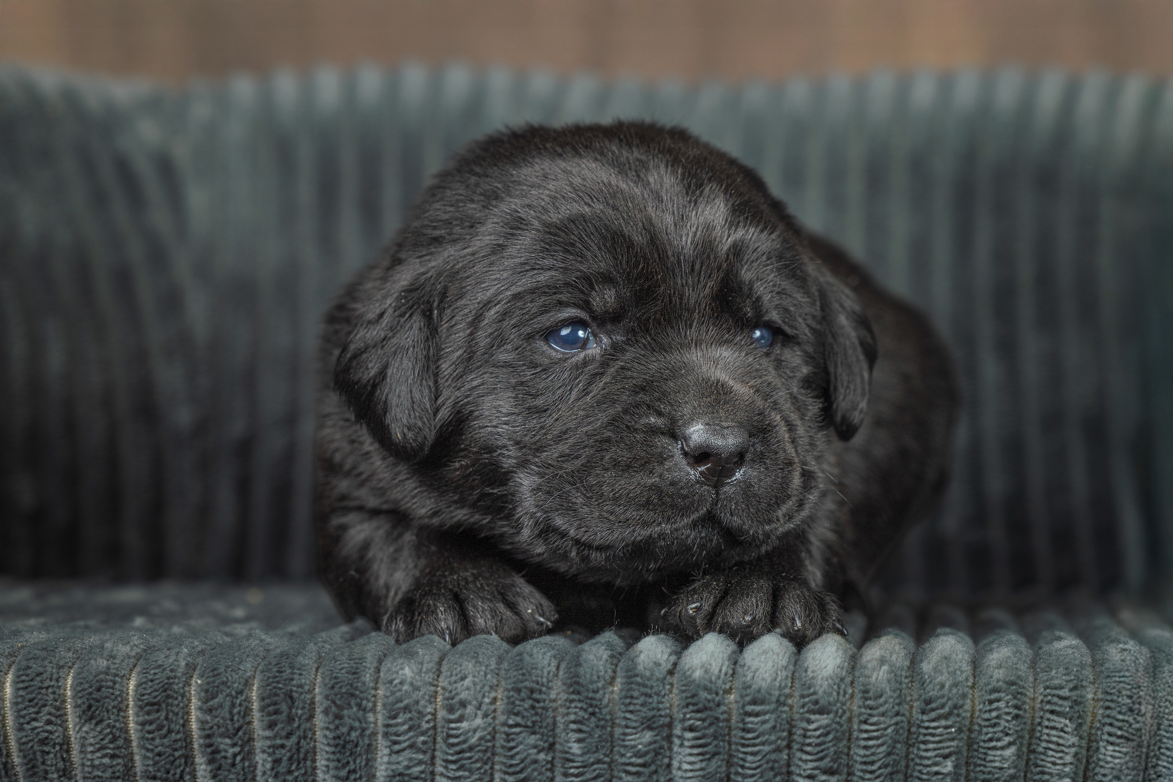 Vandaag hebben we de pups gefotografeerd op het hondenbankje. Alvast een foto van het zwarte teefje. De foto's van de andere pups hebben jullie nog tegoed ....